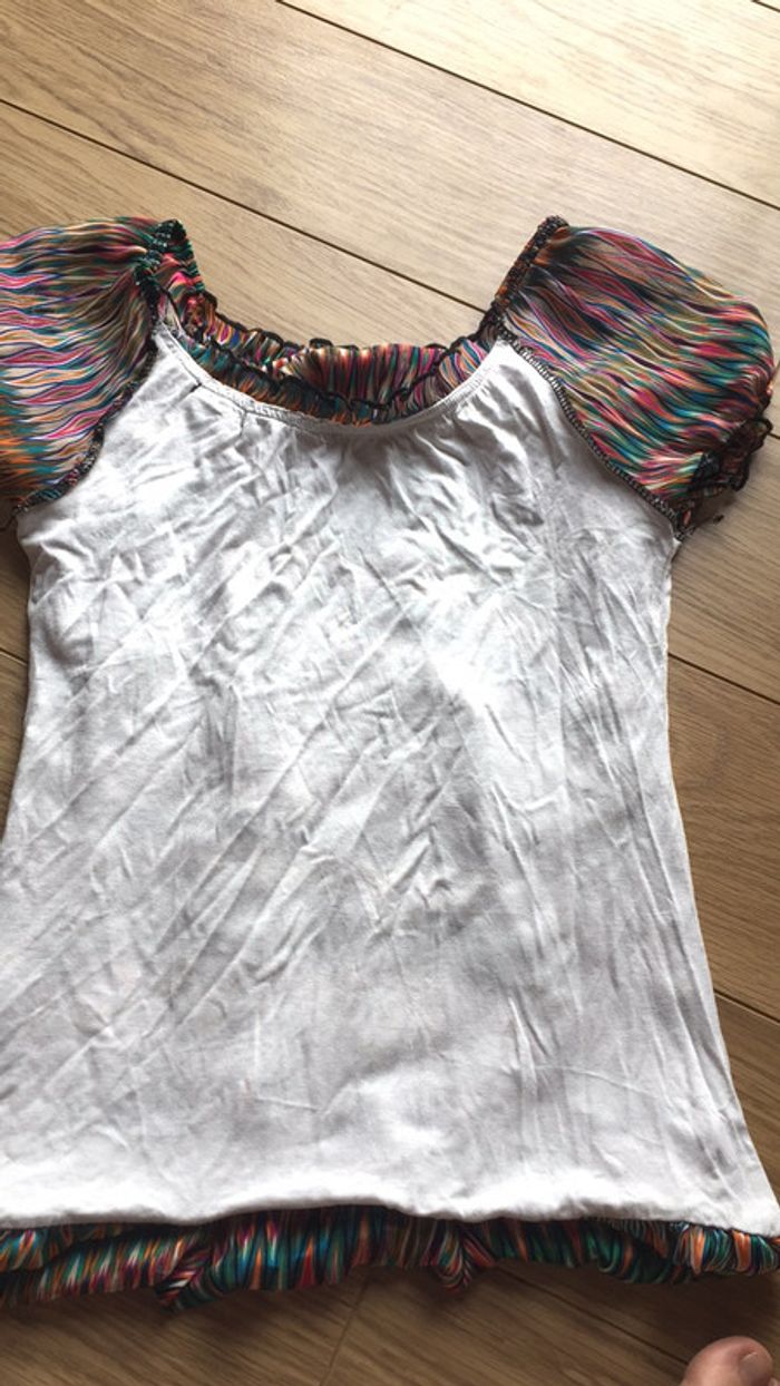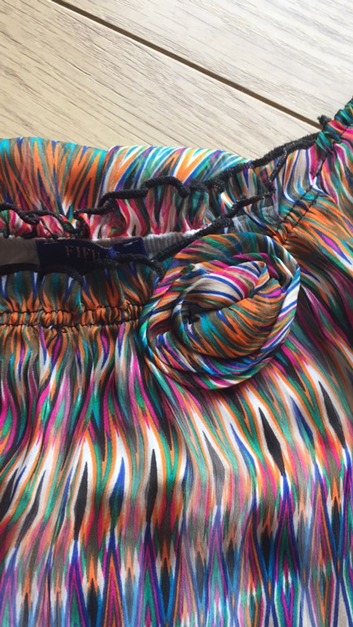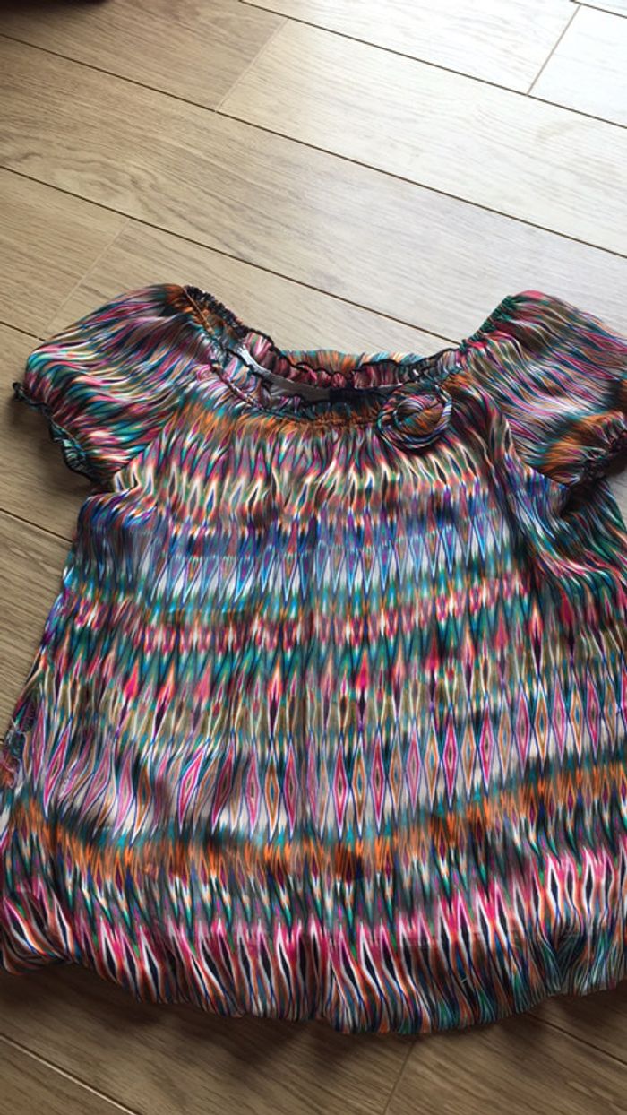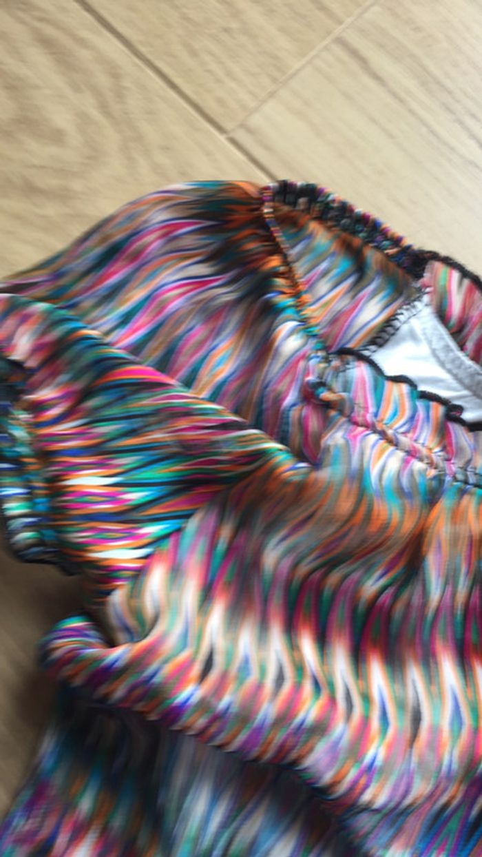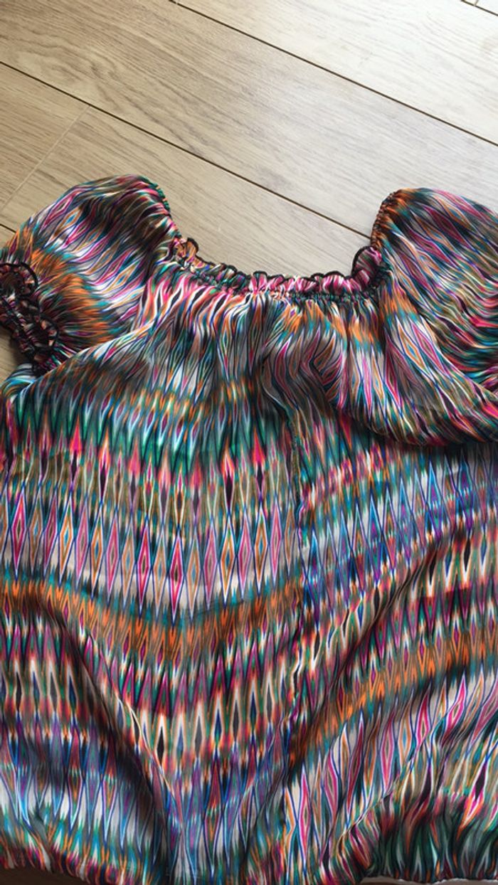 Très joli haut coloré manches courtes taille trois tout doubléPetit haut ressayons tout festonnés autour du décolleté autour des manches petits détails avec une rose dans le même tissu cousu au bord du décolleté #O #PetitOsColoré #OTaille3 #T-ShirtTaille3 #T-ShirtColorés #Chemisier #ChemisierTaille3 #ChemiseColorée #ChemiseColoréeTaille3