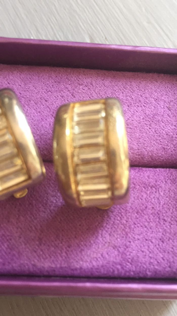 Très belle paire de boucles d’oreilles vintage dorée avec strass style diamants baguettes Il ne manque aucun strass #vintage #bouclesclip #bouclesdoreillesvintage