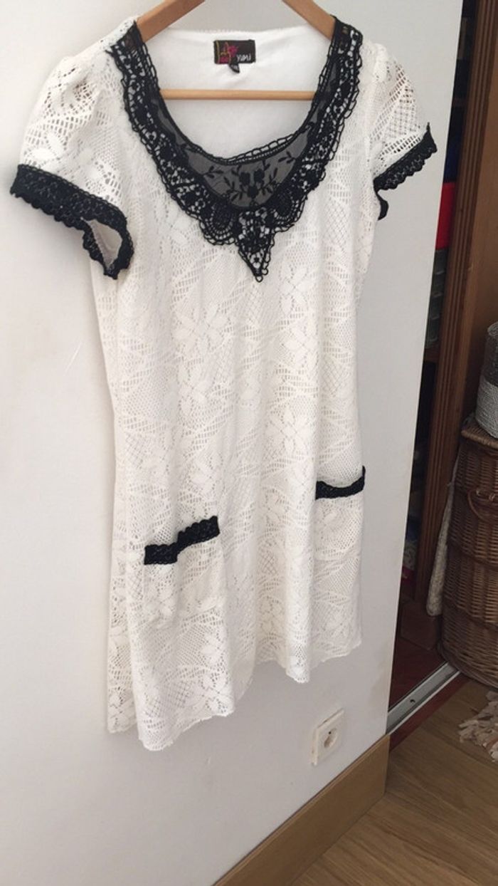 Superbe robe dentelle blanche et noire taille SM - photo numéro 2