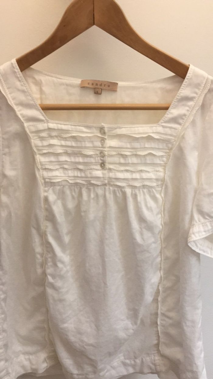 Blouse à manches courtes blanche Sandro taille 1 / haut blanc / dentelle / manches - photo numéro 1