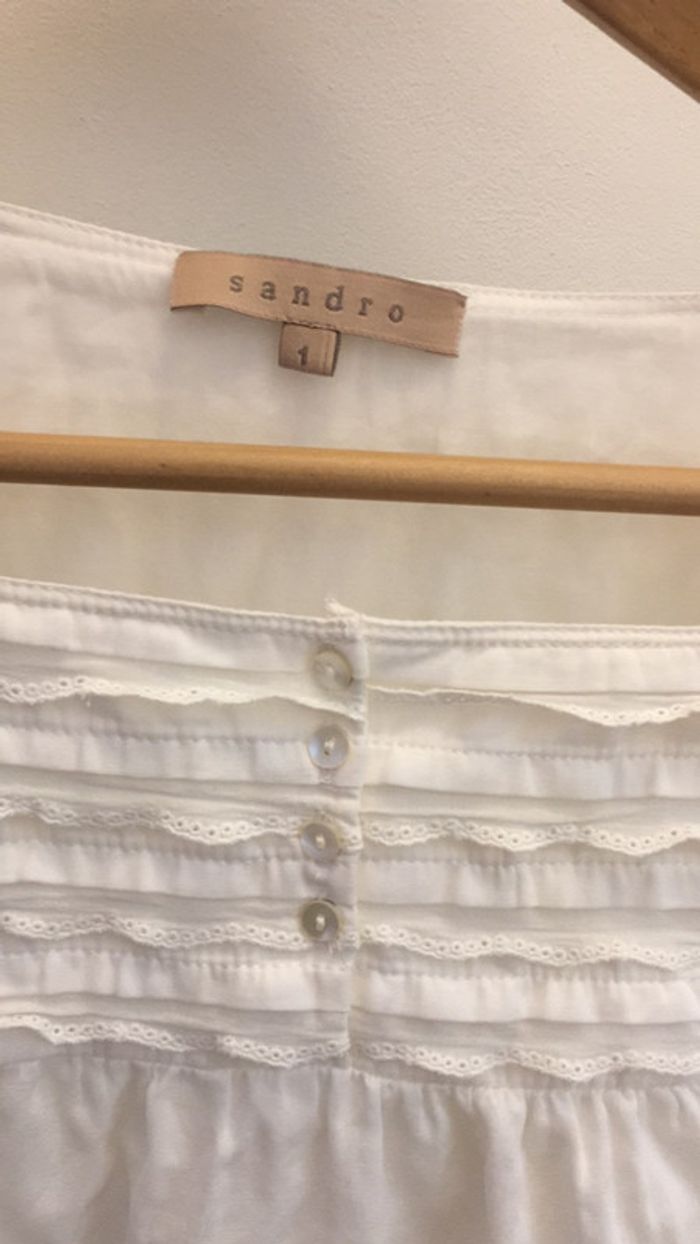 Blouse à manches courtes blanche Sandro taille 1 / haut blanc / dentelle / manches - photo numéro 2