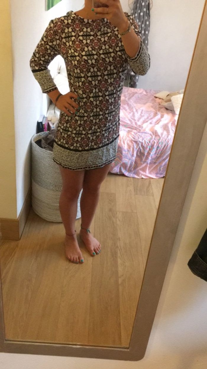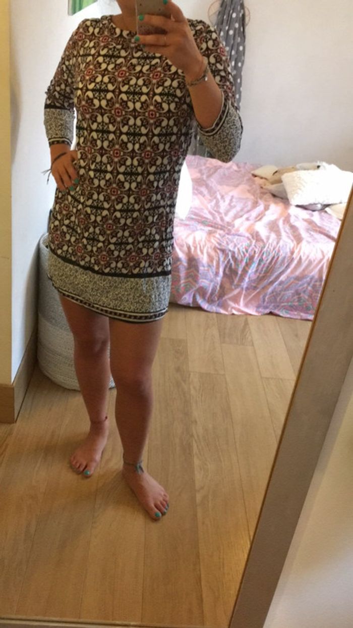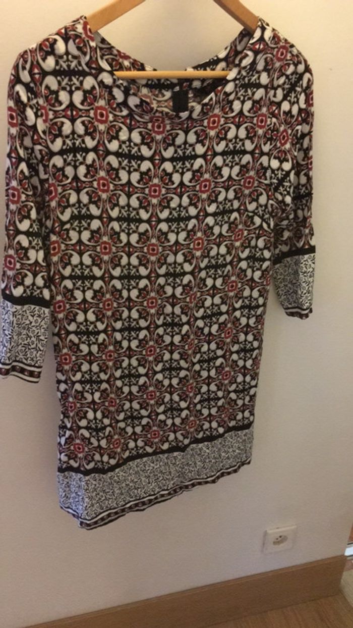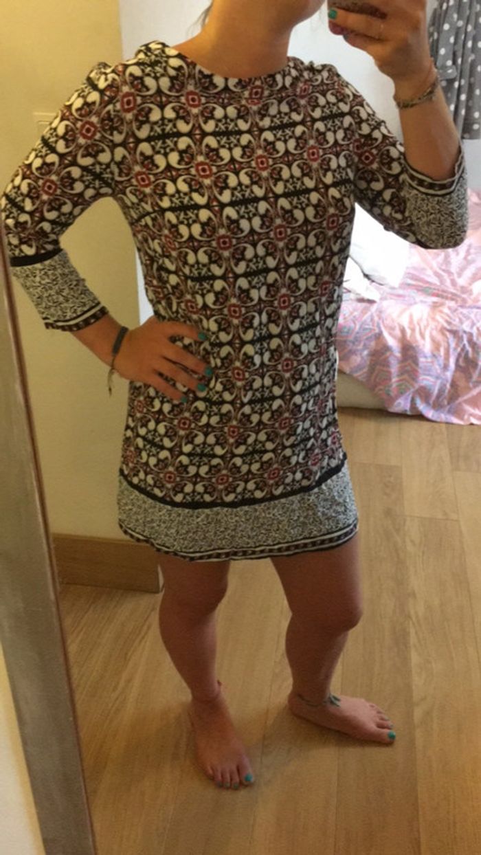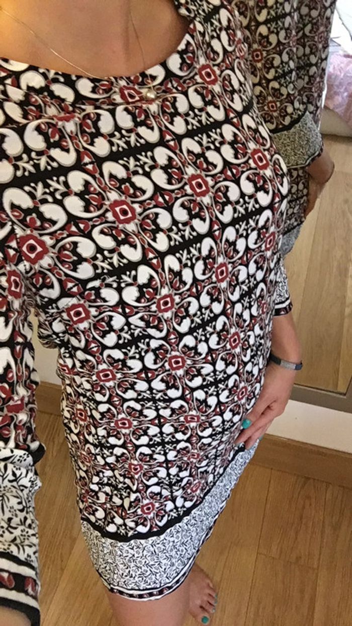 Magnifique robe qui rend super bien portée Elle se ferme par une fermeture éclair dans les dos Les manches vont 3/4 #robelégère #robefluide #robemanches3quart #robedete #robetailles #robe36 #motifsrougeetnoir