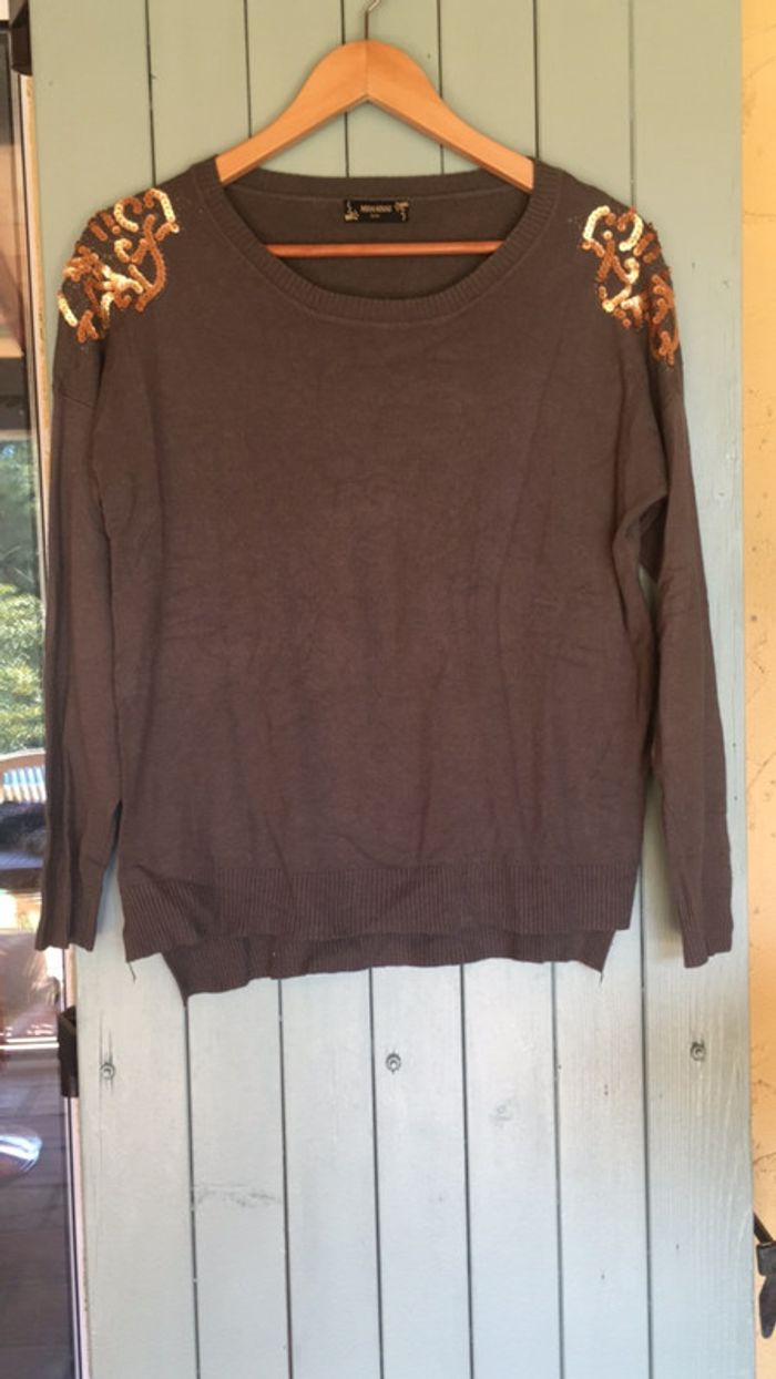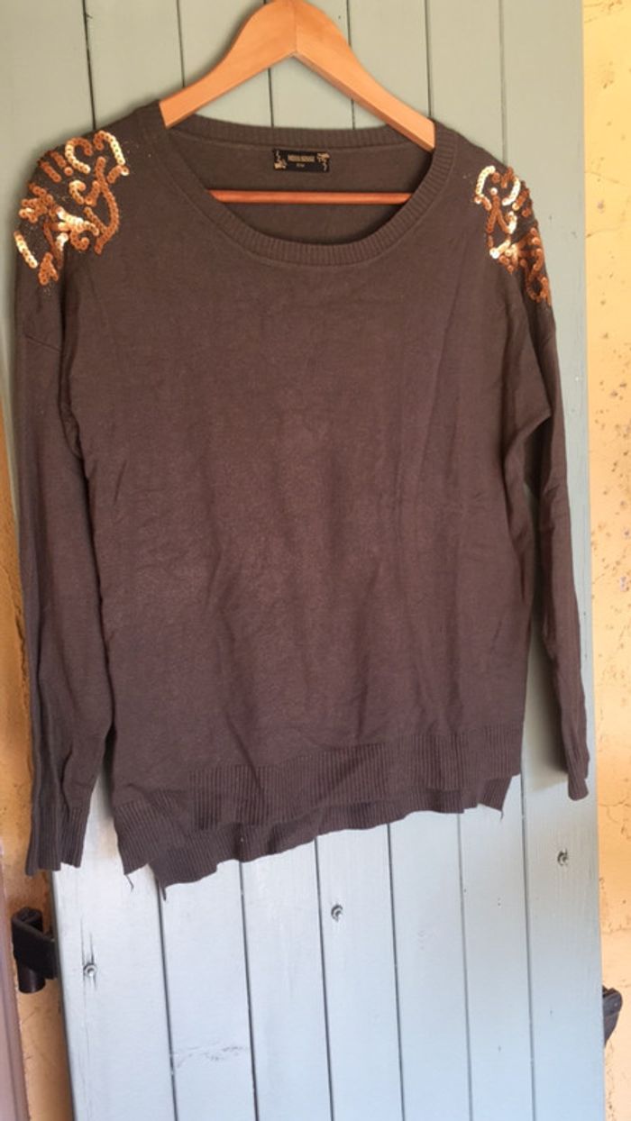 Pull tout doux kaki taille S/M motifs sequins dorés - photo numéro 1