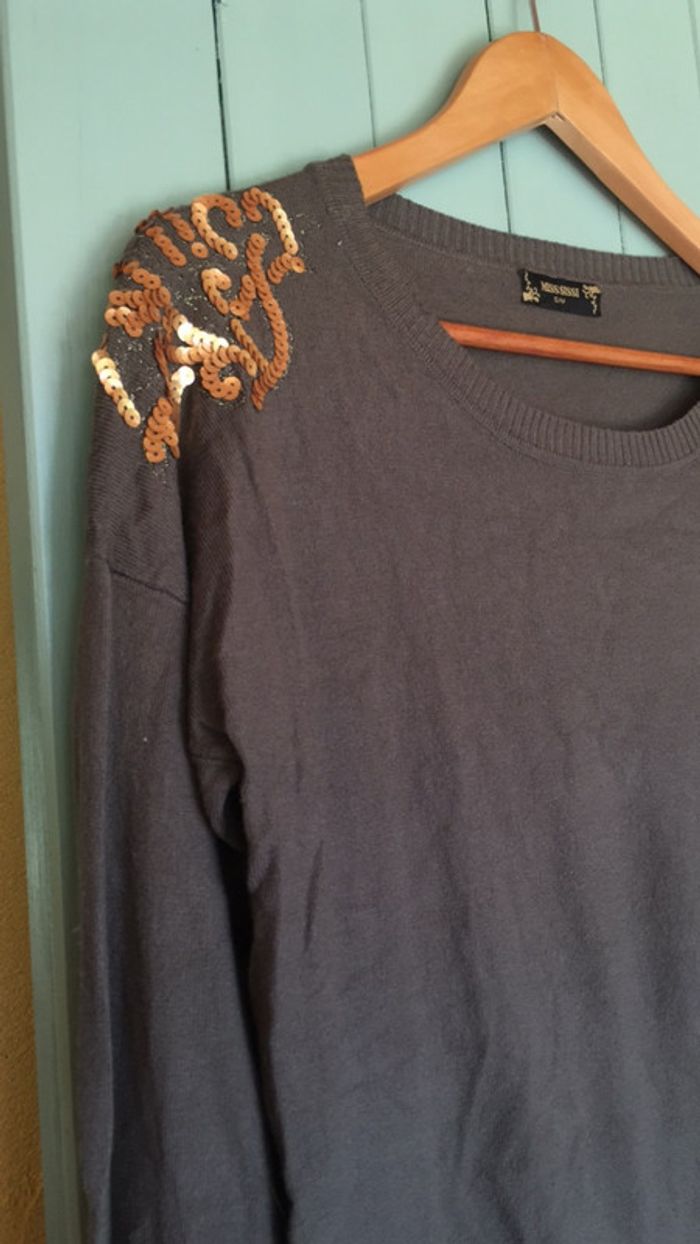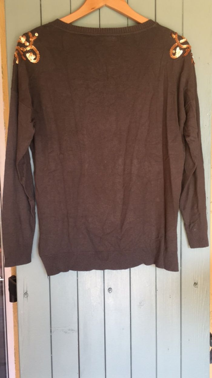 Pull tout doux kaki taille S/M motifs sequins dorés - photo numéro 3