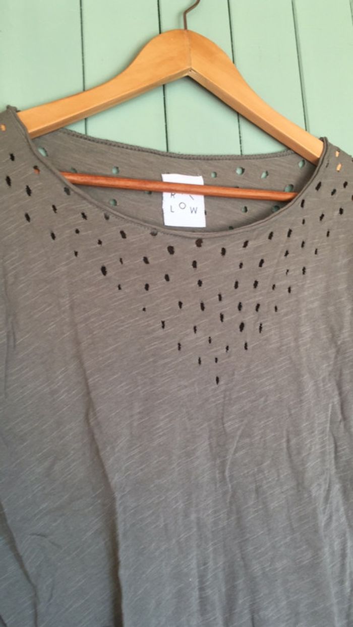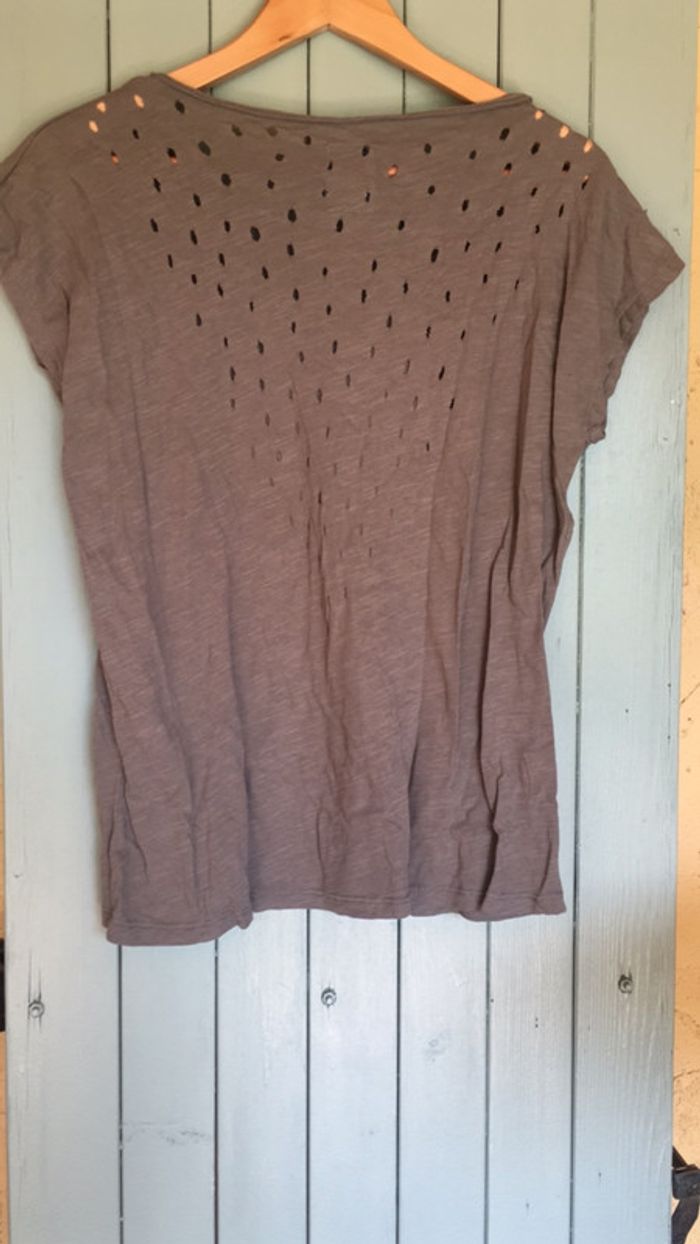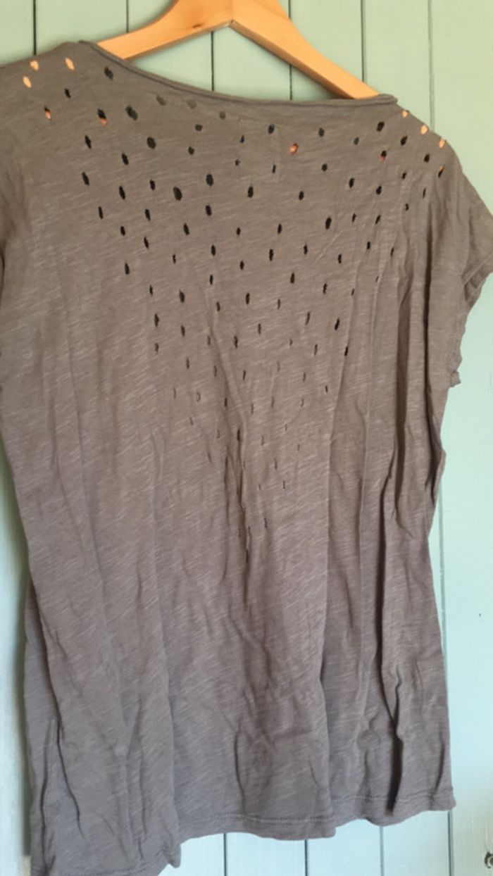 Tee shirt à manches courtes style original troué taille M kaki - photo numéro 4