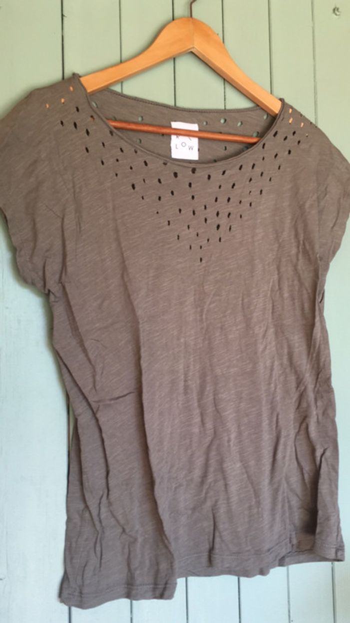 Tee shirt à manches courtes style original troué taille M kaki - photo numéro 1