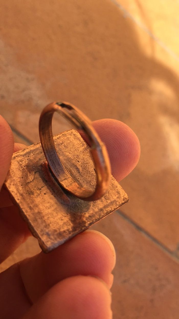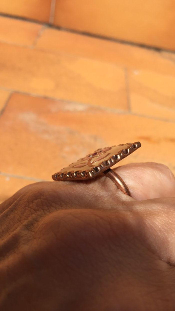 Bague réglable Style émaux dessin fleur Nude sur fond légèrement pailletée
