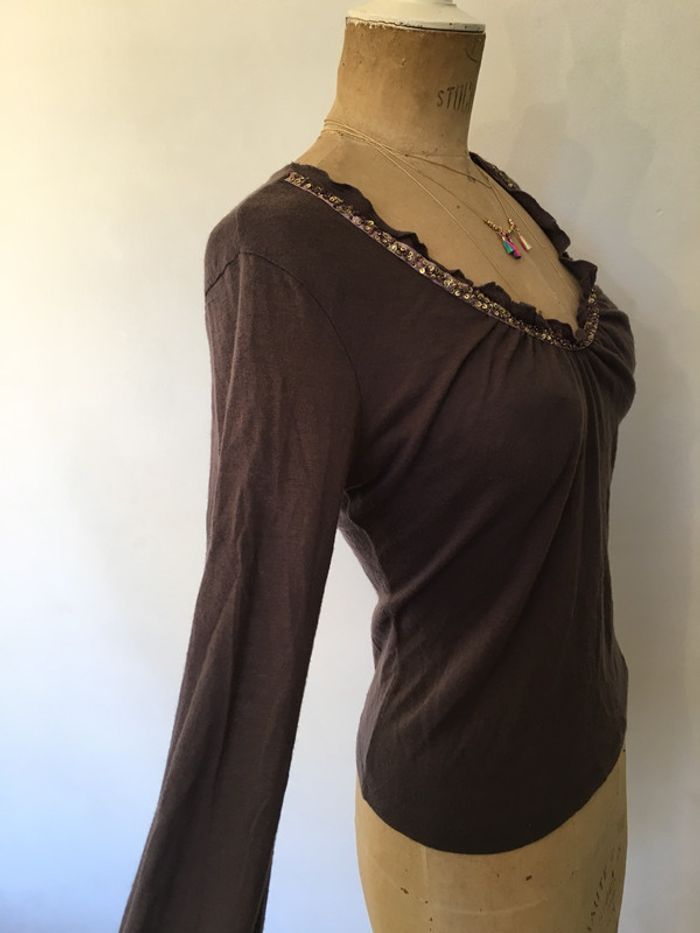 Haut à manches longues Caroll col V violet - photo numéro 5