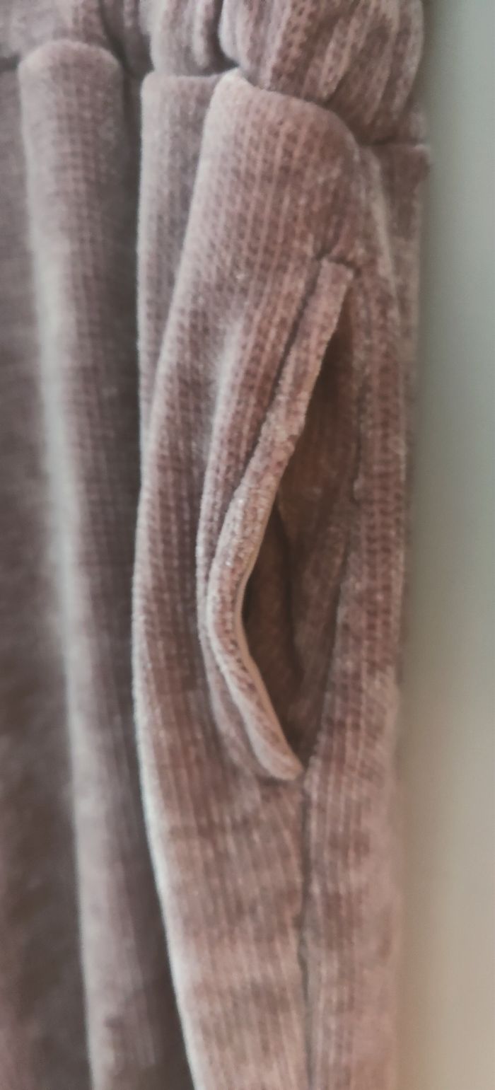 Pyjama très doux et cocooning, j'est retirer le cordon de la capuche, avec 2 poches, plus d'étiquettes de marque/ composition couleur vieux rose