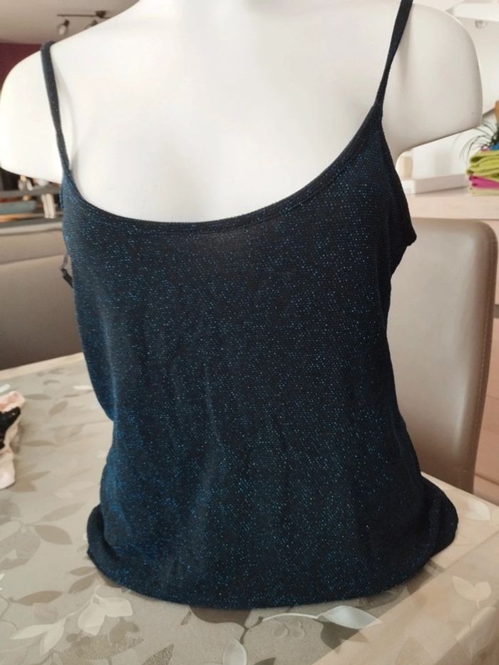 Caraco brillant bleu et noir camaïeu taille 46 - photo numéro 6