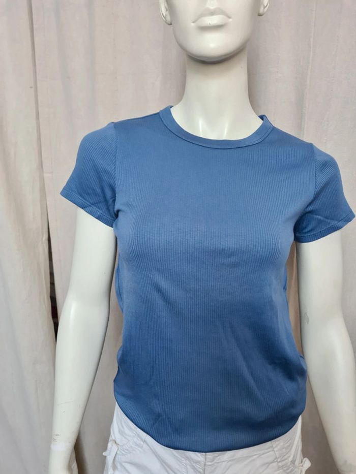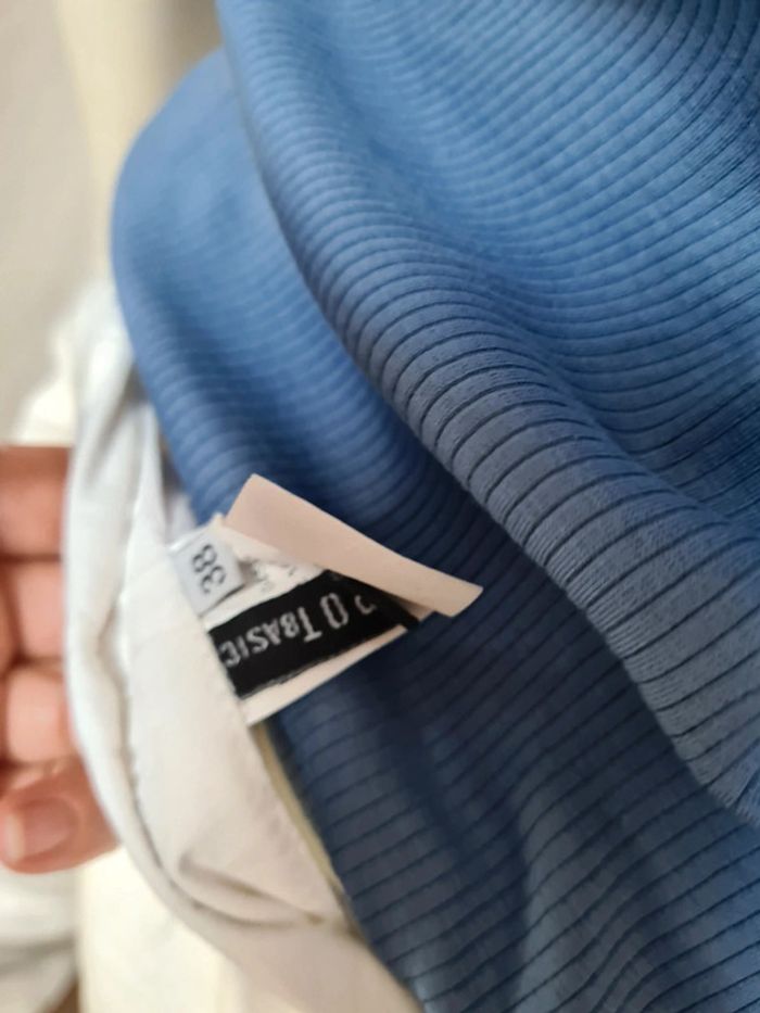 Tshirt uniglo bleu indigo côtelé neuf Pantacourt blanc spot basic neuf Tenue en 38 #laetab38