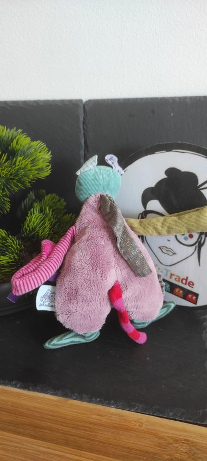 doudou Peluche souris moulin roty jolis pas beaux violet rose vert rond rayé semi plat - photo numéro 1