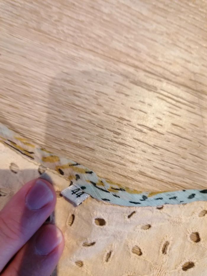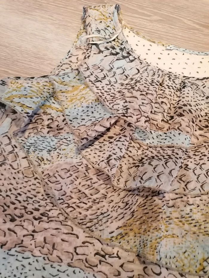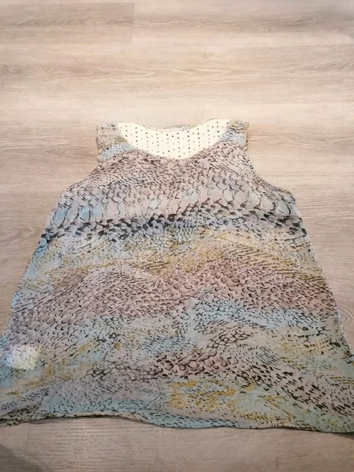 Bonjour, je vends ce débardeur transparent avec des volants sur le haut taille 44 en bon état. Lavé maison non fumeur.
