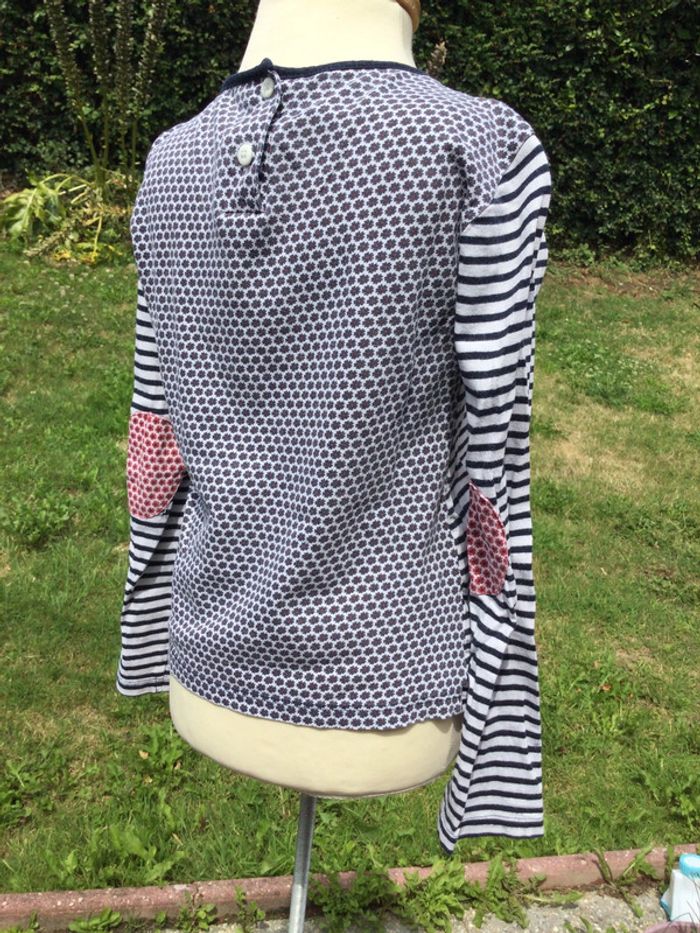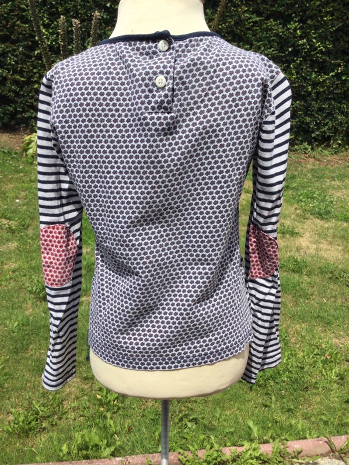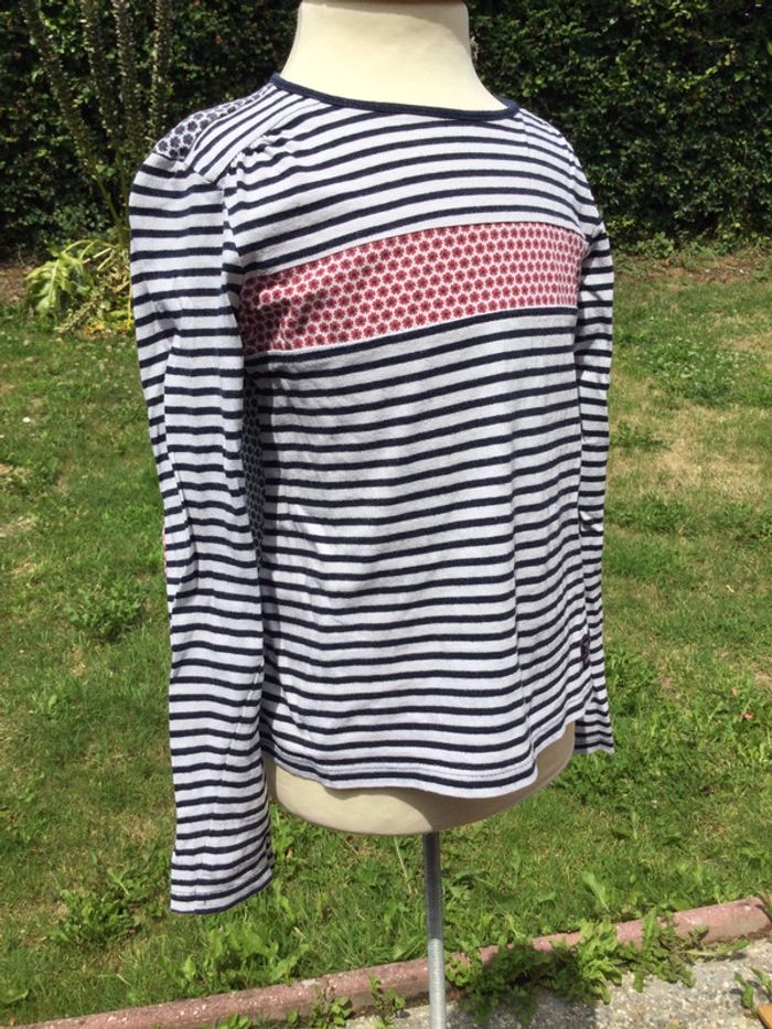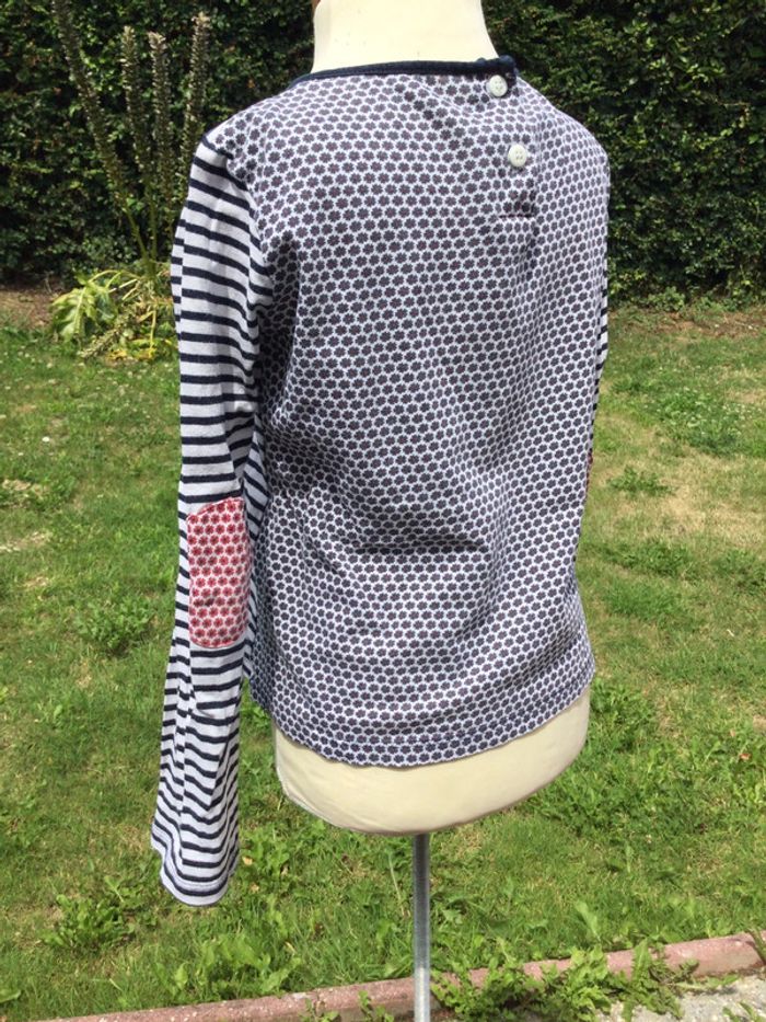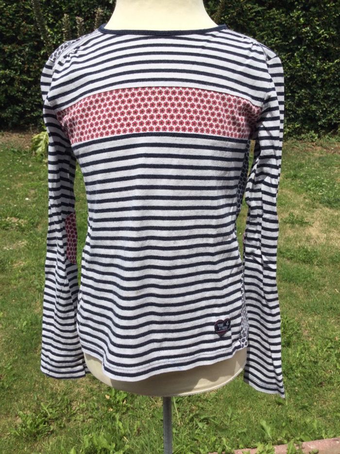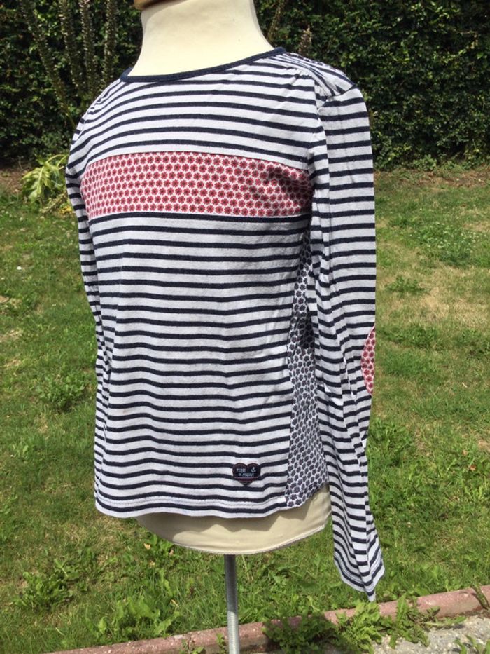 T-shirt manches longues Terre de marins 7 ans Marinière Bleu marine, rouge et blanc Rayures et fleurs 100% coton