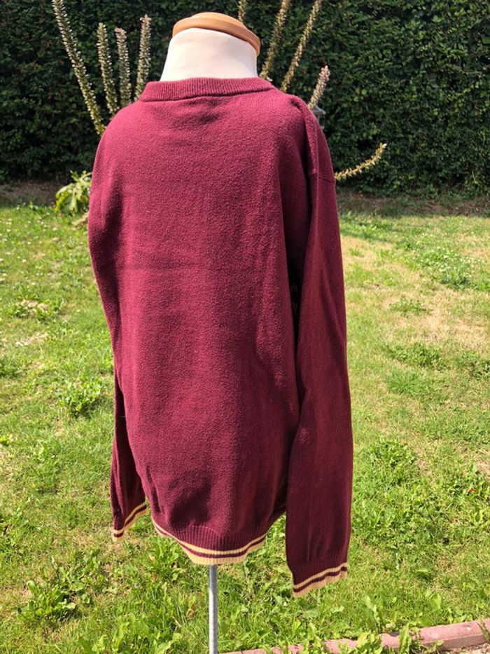 Pull Harry Potter Cyrillus 10 ans Bordeaux, jaune et gris Gryffon d’or 94% coton 5% cachemire 1% laine