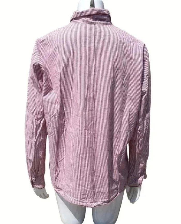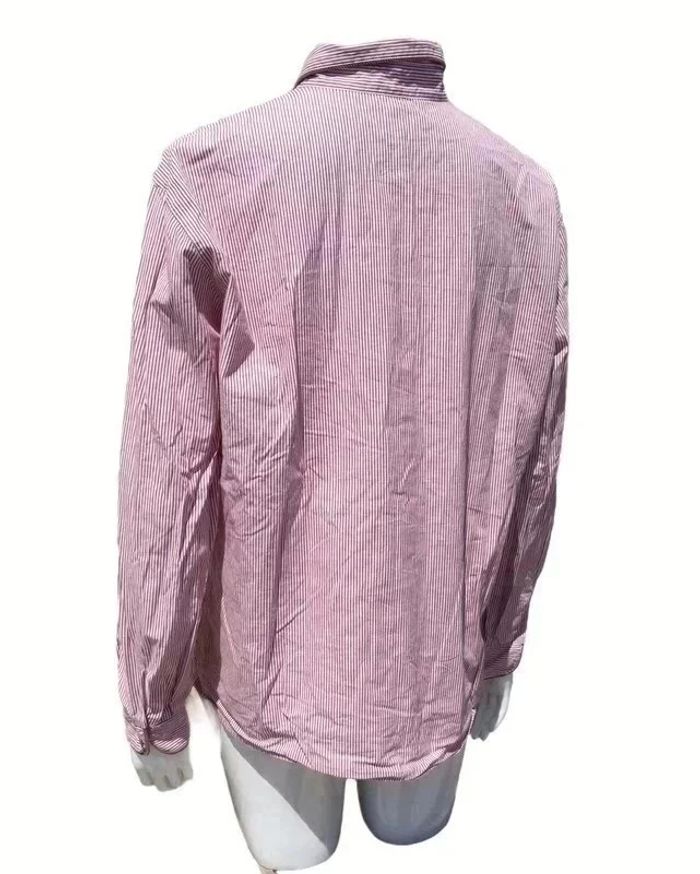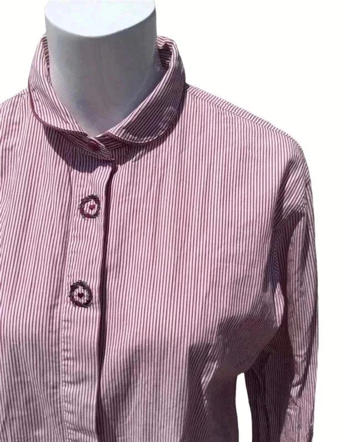 chemisier manches longues vintage 44 rayures bordeaux, vert et blanc motif couronne de fleurs autour d’un cœur