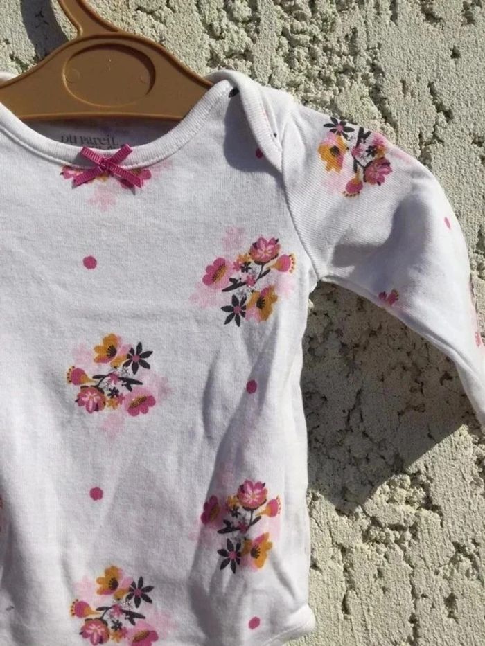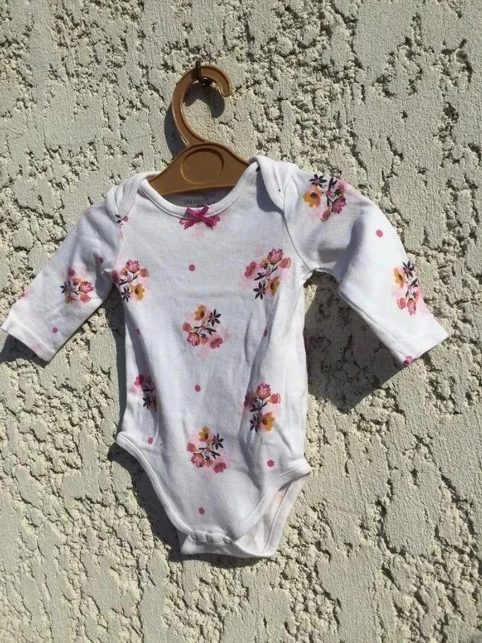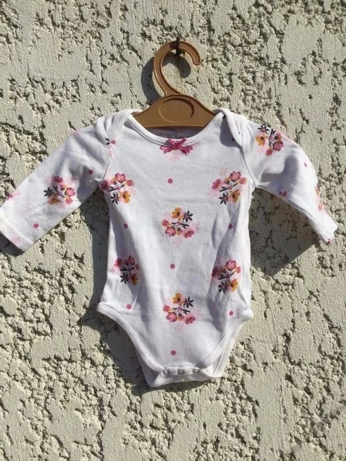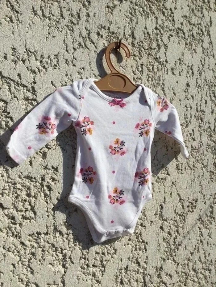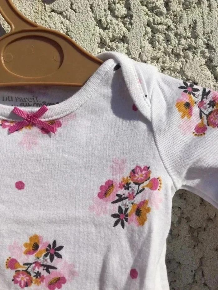 Bodie manches longues du pareil au même blanc et multicolore motif fleurs 3 mois 100% coton