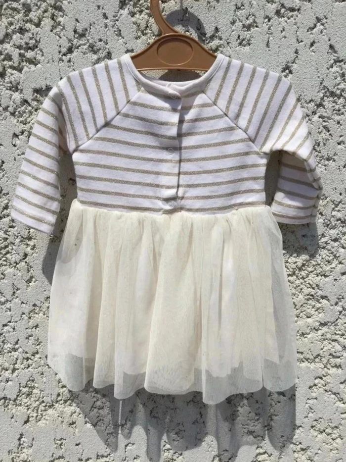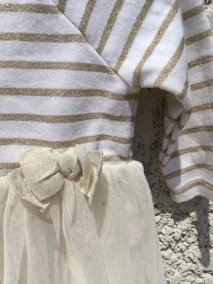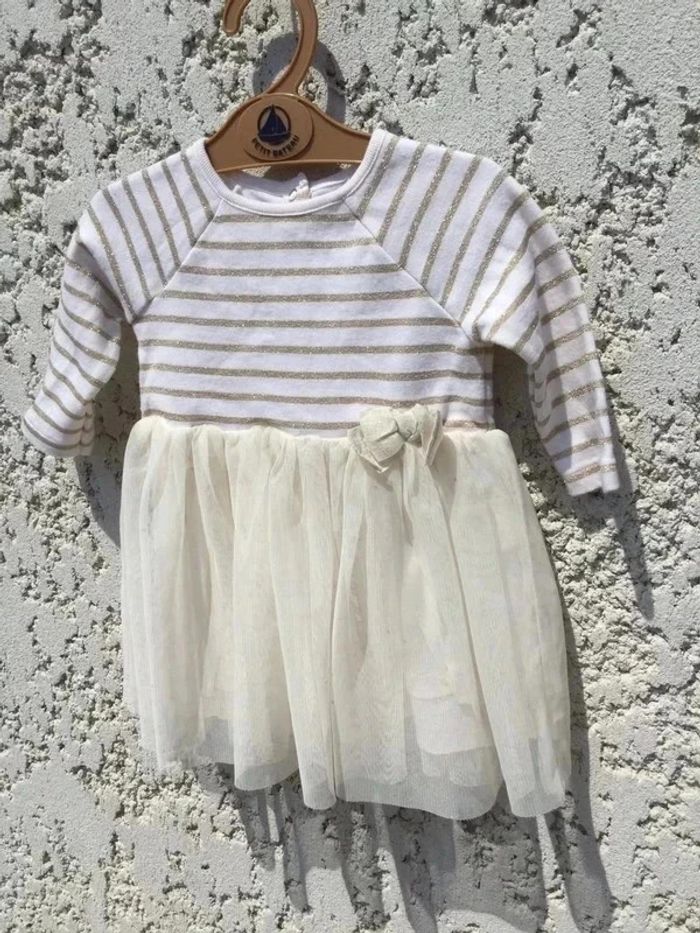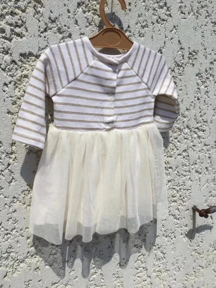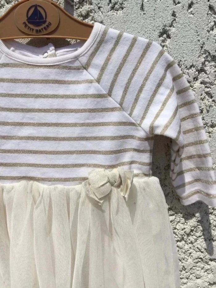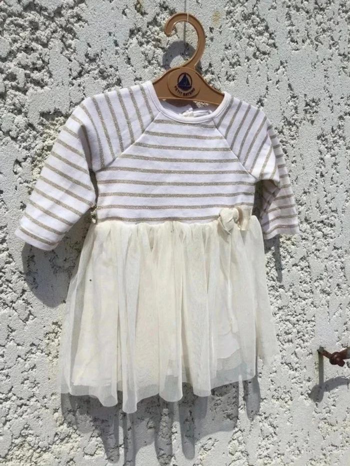 robe petit bateau rayures marinière blanc, crème et doré manches longues bas en tulle 6 mois 100% coton