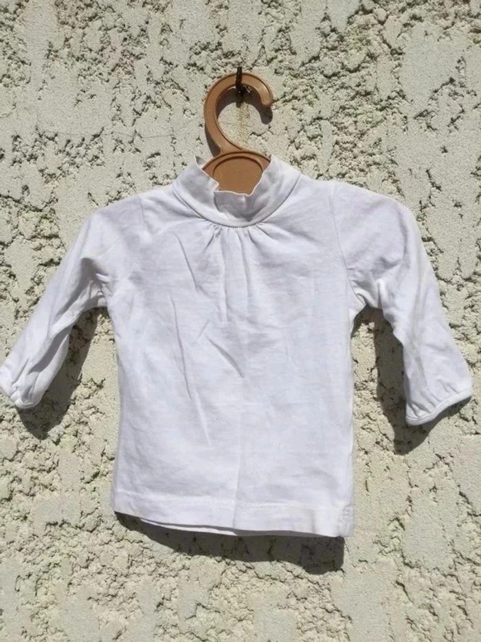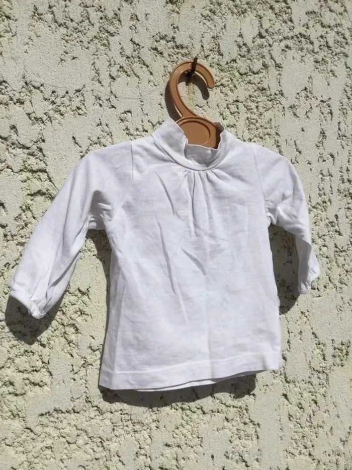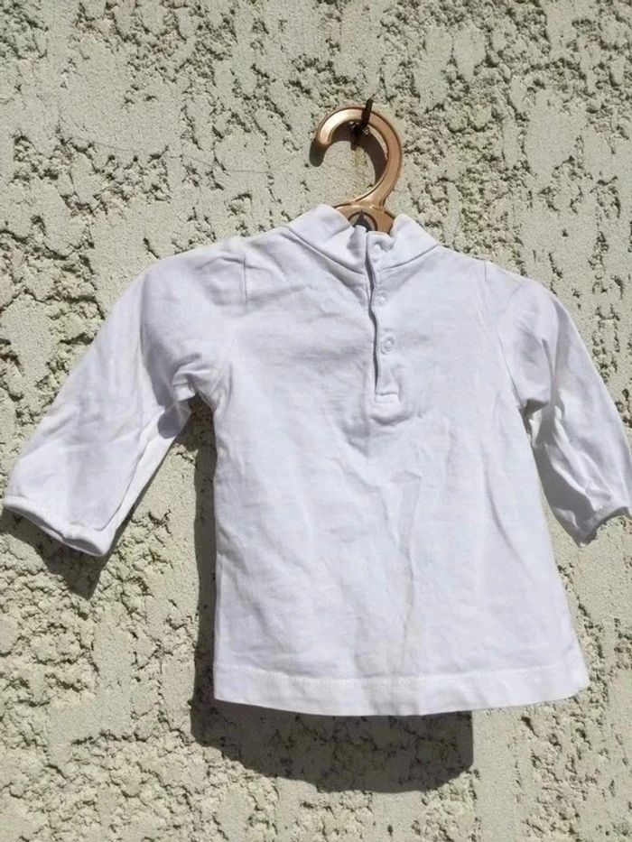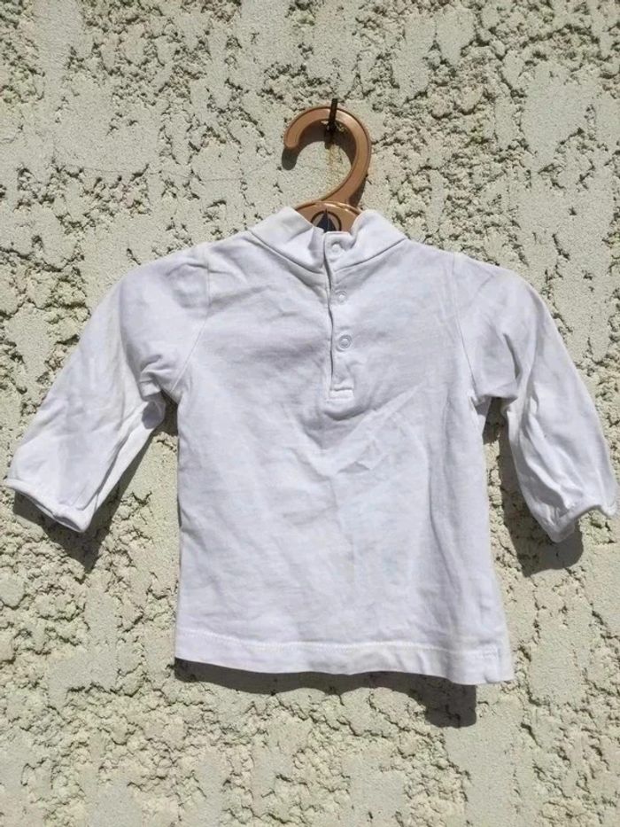 T-shirt manches longues Petit col cheminée Bout’chou Monoprix 6 mois Blanc 100% coton