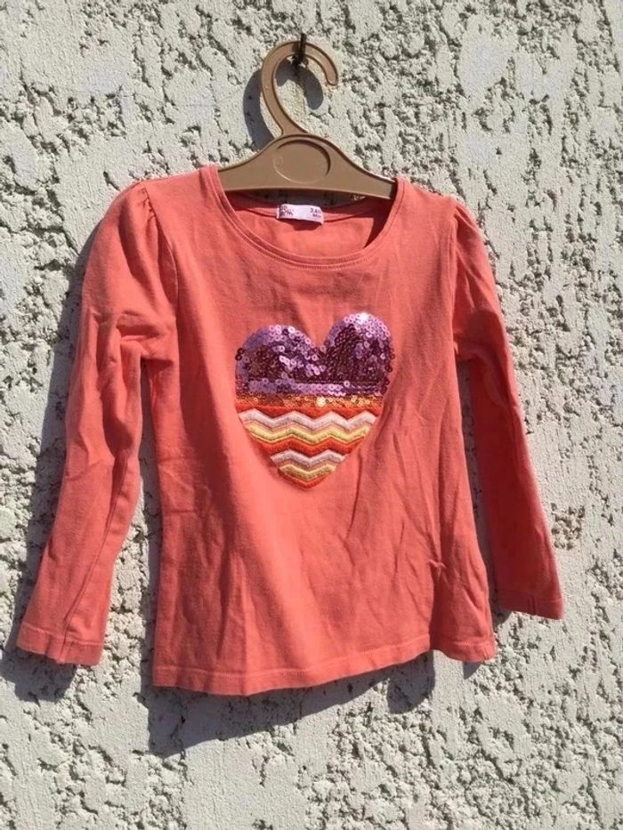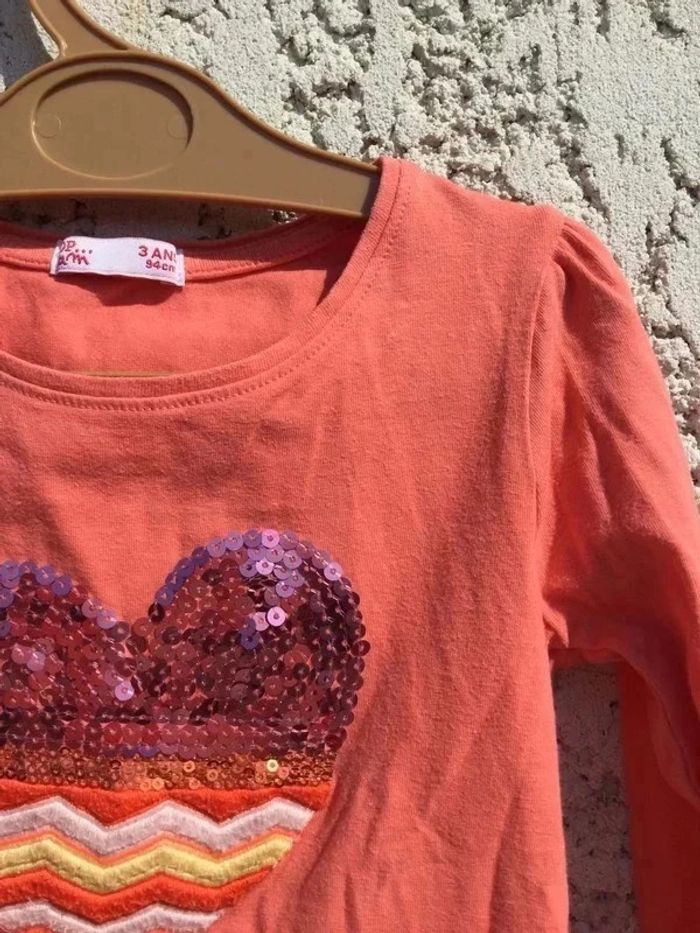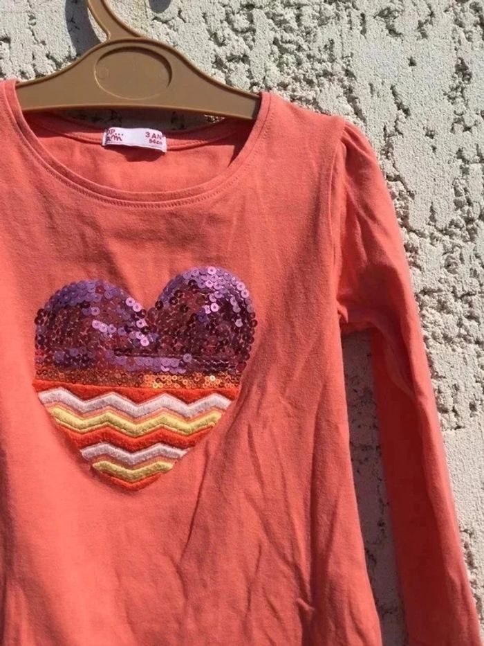 t-shirt manches longues du pareil au même orange et multicolore motif cœur 3 ans 95% coton 5% elasthane
