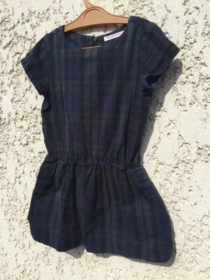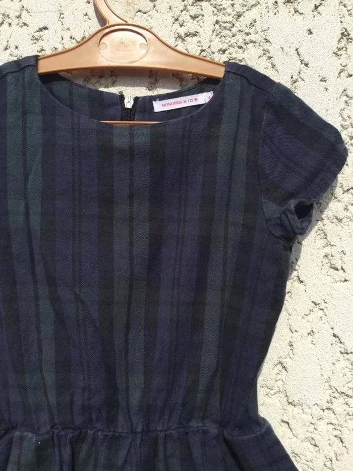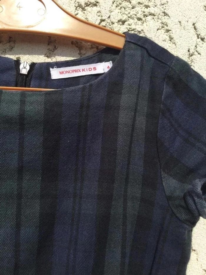 robe Monoprix kids 4 ans 97% coton 3% elasthane carreaux bleu marine et vert foncé