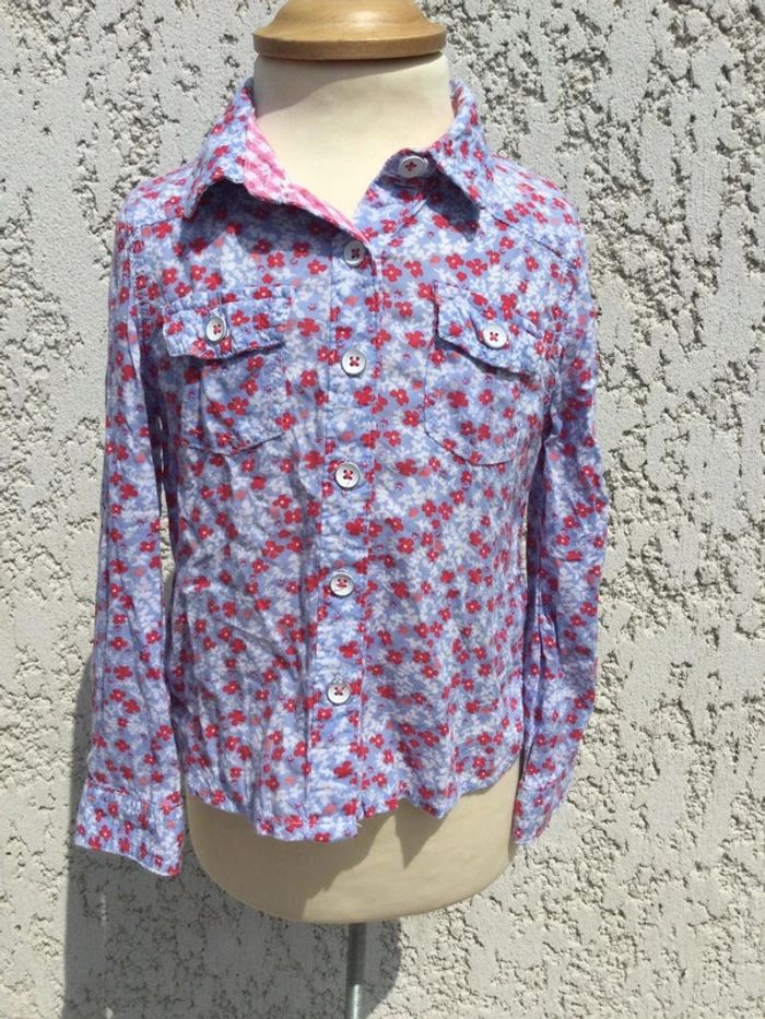 chemise manches longues Palomino bleu ciel, rouge et blanc 100% coton motif fleurs / liberty neuf
