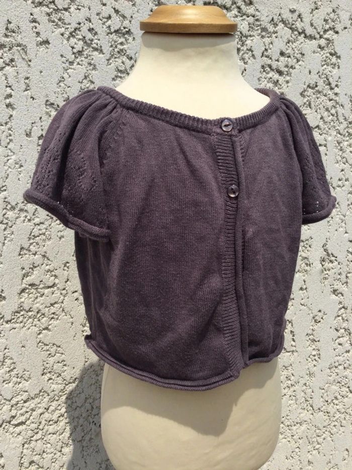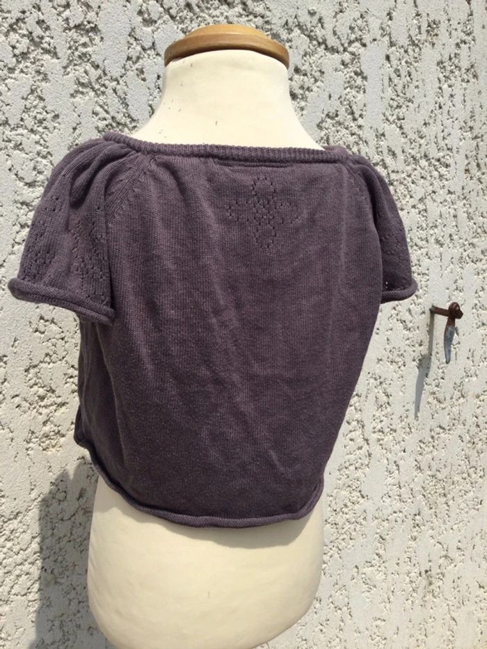 Gilet manches courtes ajourées NKY 10 ans gris 60% viscose 40% coton