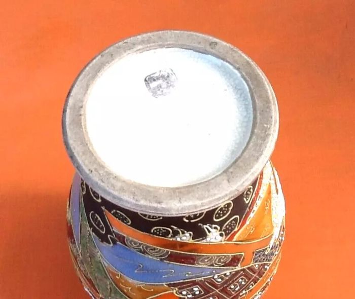 Années 1920 Vase  « Satsuma » Porcelaine polychrome à décor de personnages sur fond or - photo numéro 10
