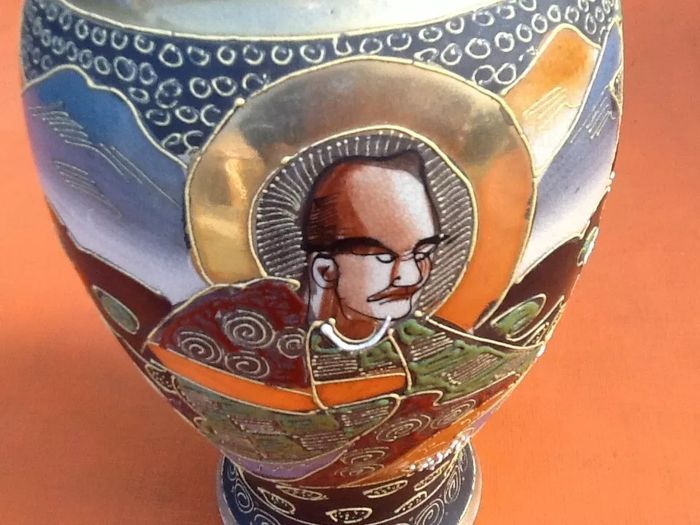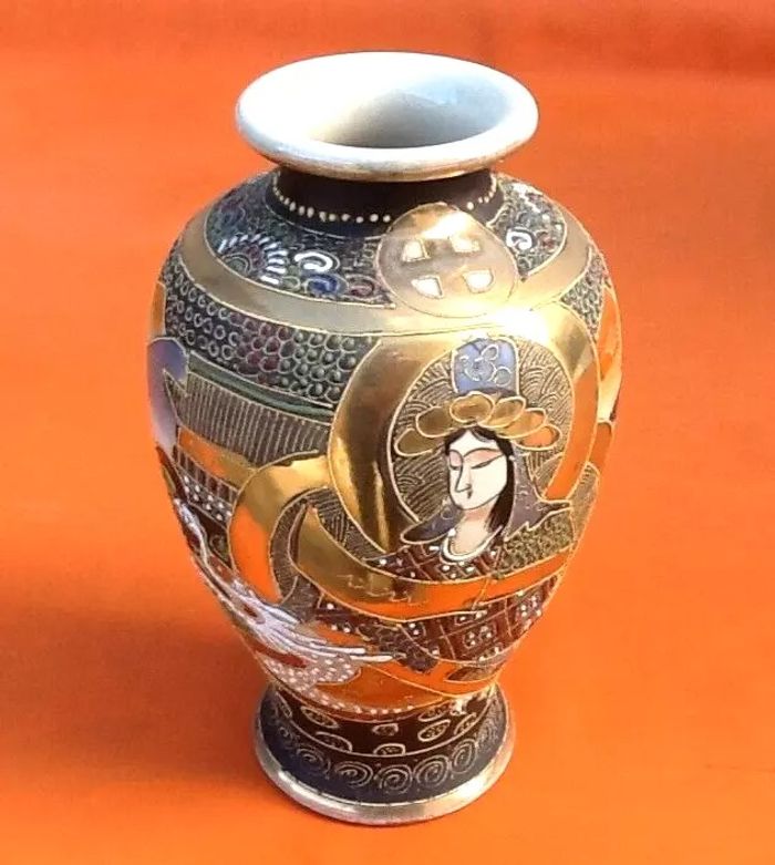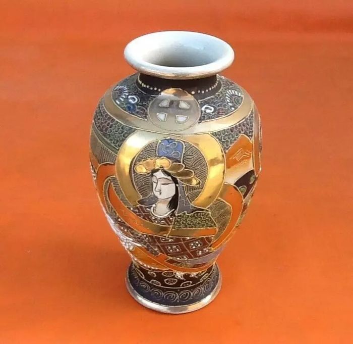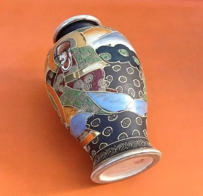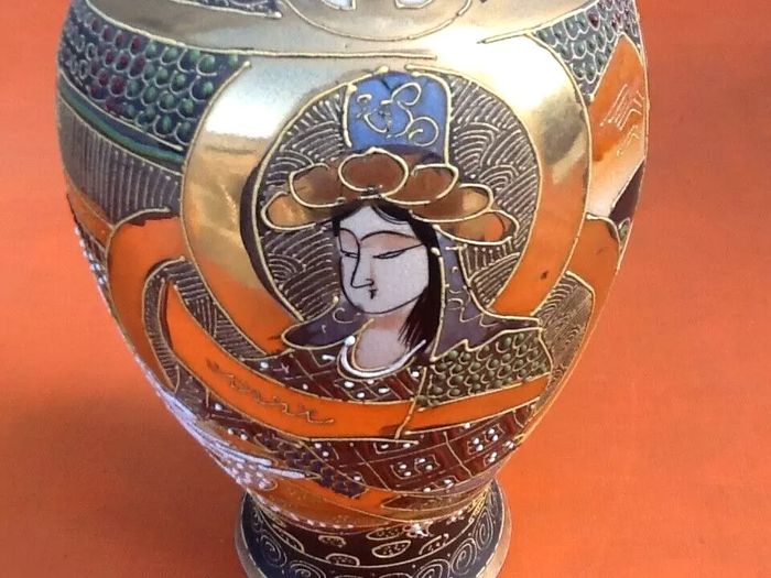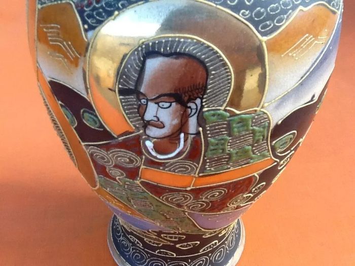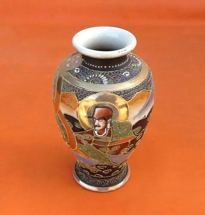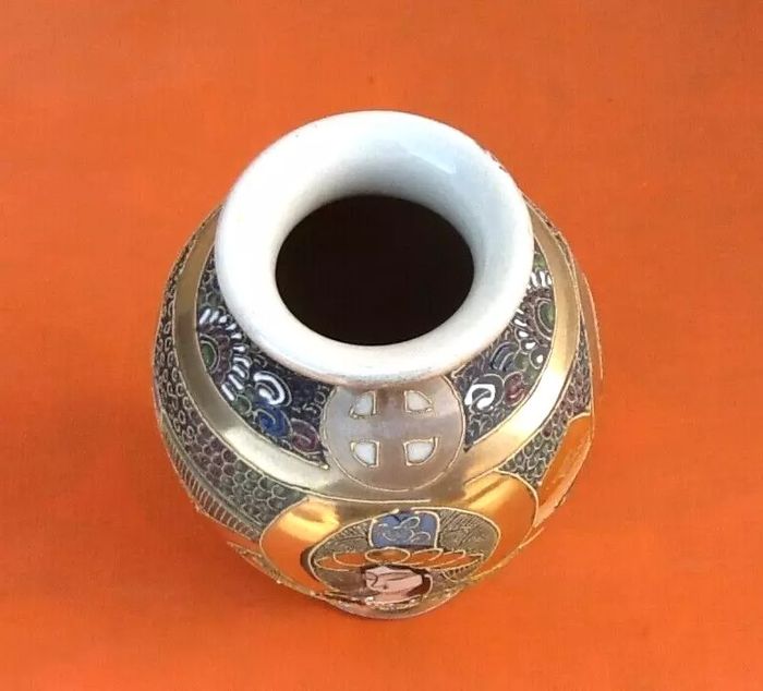 Années 1920 Vase  « Satsuma » Porcelaine polychrome à décor de personnages sur fond or - photo numéro 1