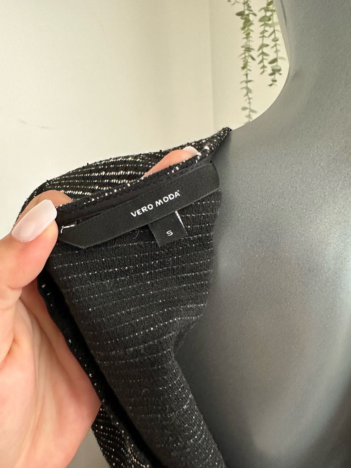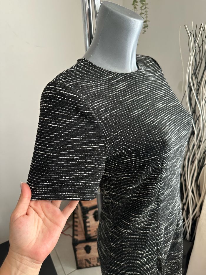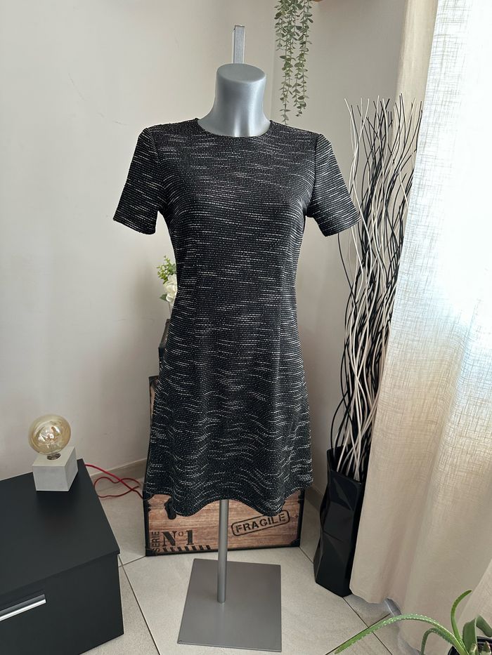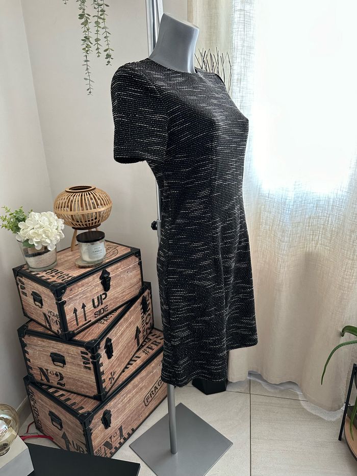 Robe cintrée noire et beige texturé, manches courtes , encolure arrondis , matière extensible Taille S. Vero Moda. Seconde main en très bon état