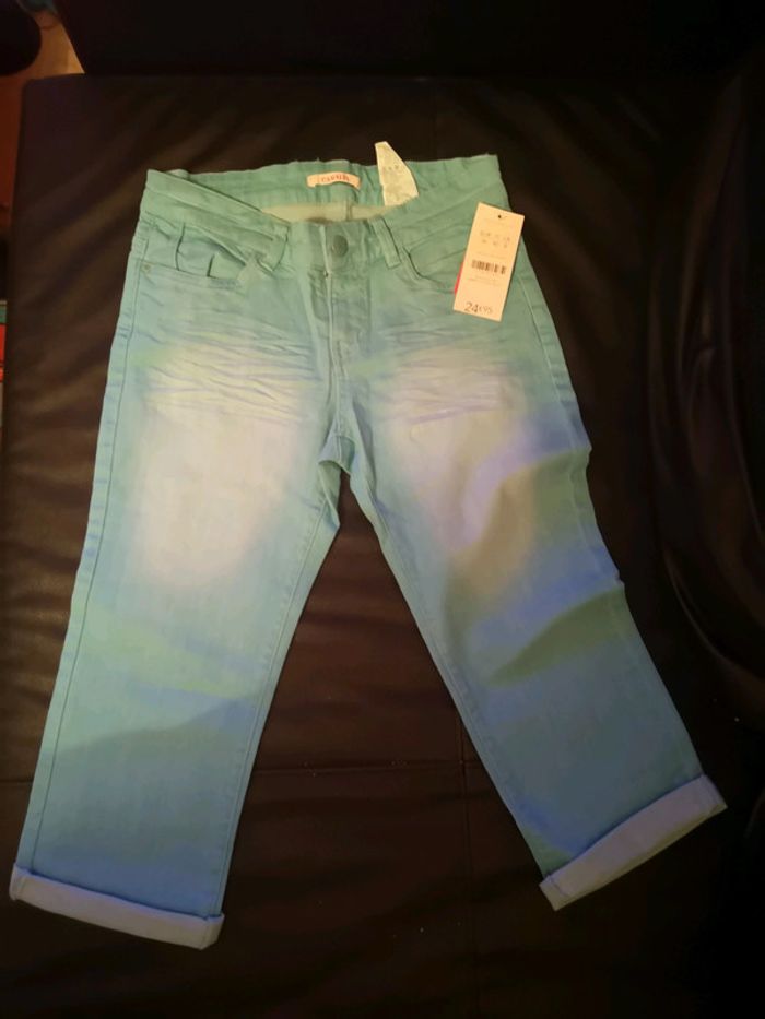 Vend pantacourt bleu turquoise de chez camaïeu taille 36 Neuf, porté encore son étiquette d origine.