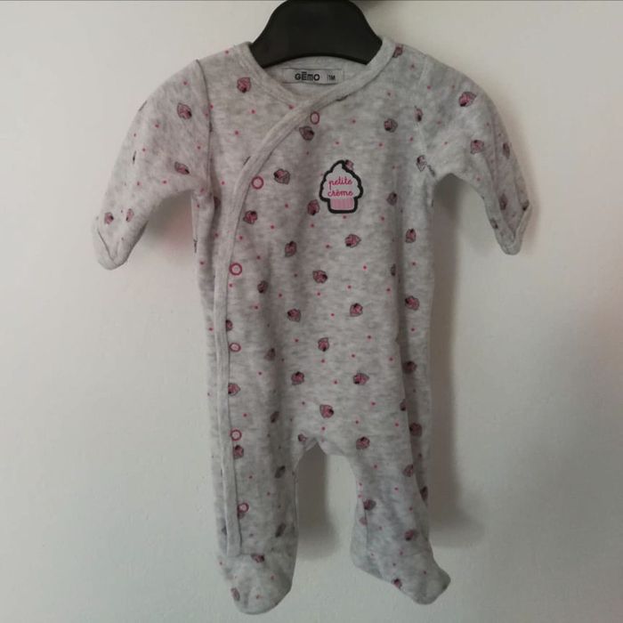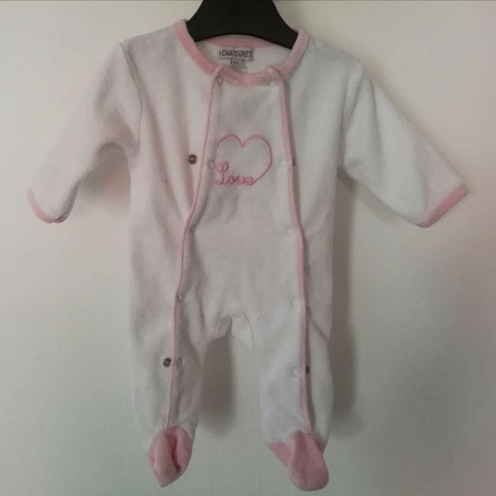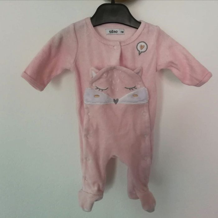 Vêtements 1 mois fille : - 3 pyjamas velours 2€ l'un - 1 t-shirt manches longues 1€ - 1 sarouel 1€ - 1 legging 1€ - 1 ensemble 3€ Vendu à l'unité ou en lot 12€. N'hésitez pas a me faire une proposition