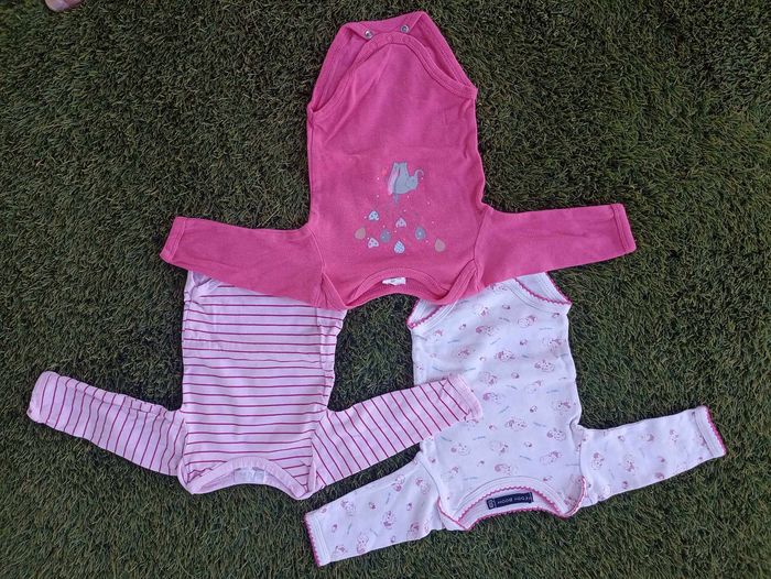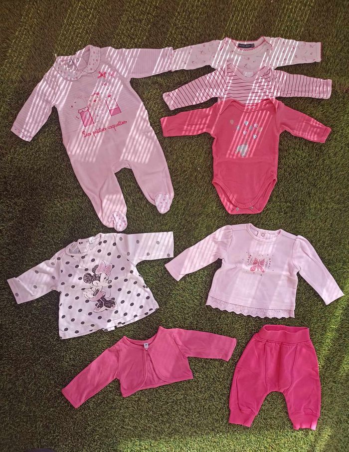 1 pyjama 2 t-shirts manches longues 3 bodys 1 boléro 1 sarouel Vendu à l'unité ou en lot. PRIX NEGOCIALE