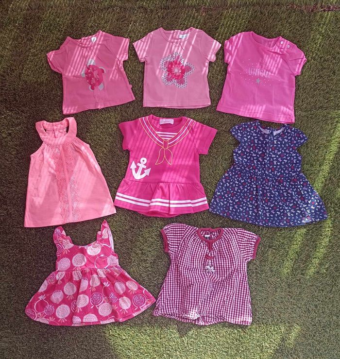 3 t-shirts manches courtes 4 robes 1 body/robe Vendu à l'unité ou en lot. PRIX NEGOCIALE