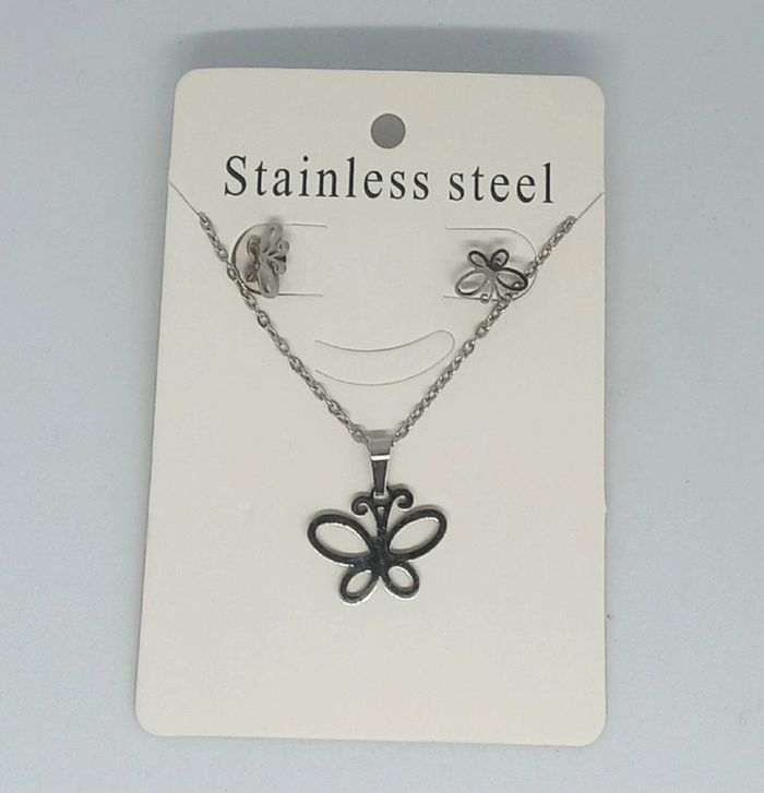 Parure collier boucles d oreilles papillon acier inoxydable femme adolescente ado