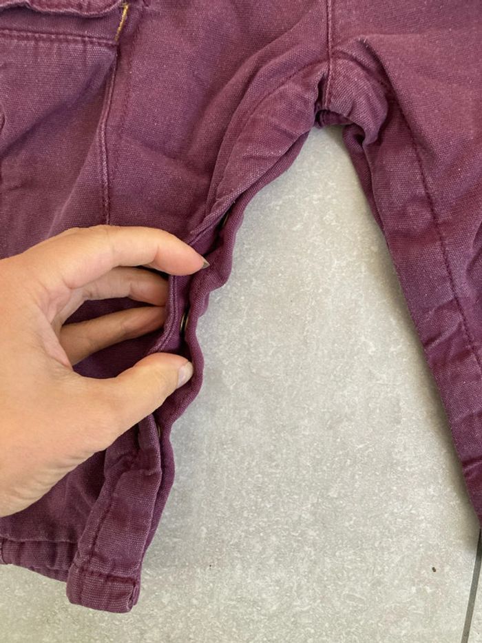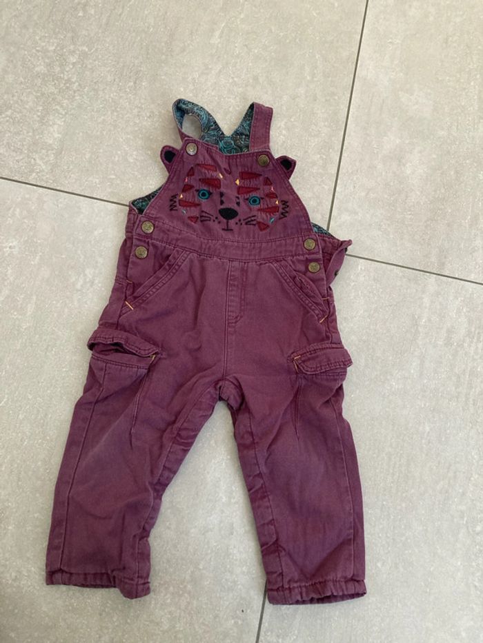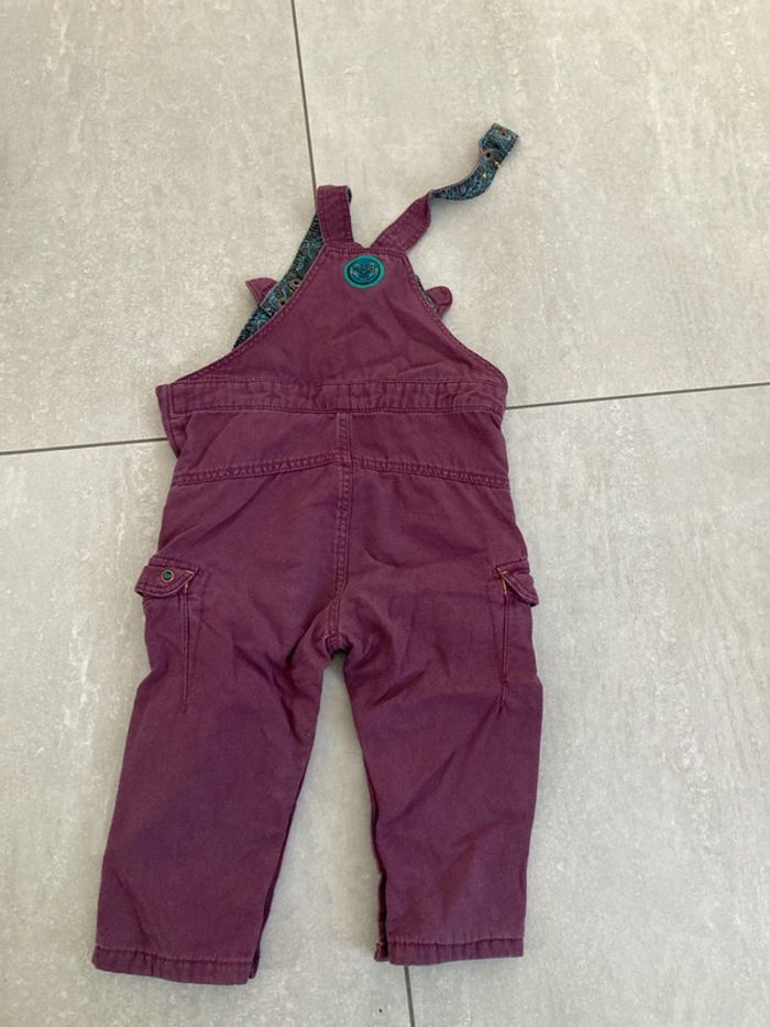 Salopette couleur violine. Idéal avec t shirt vert foncé ou moutarde ou blanc ou noir. Pressions aux Bretelles et à hauteur du bassin, pressions entre jambes. Taille 18 mois #18moisgarçonamelie08000cm