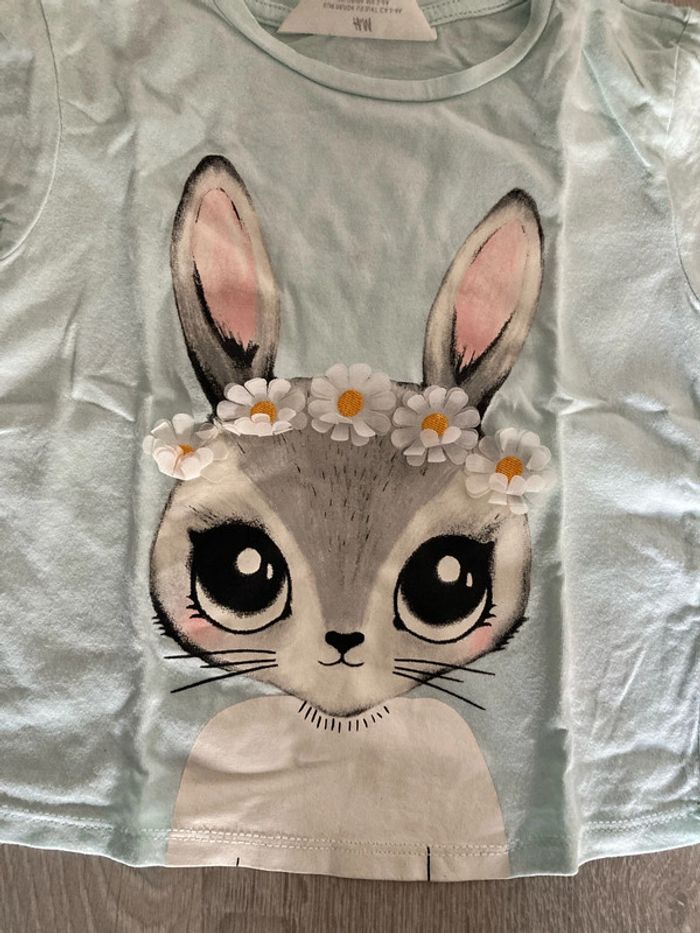 T shirt lapin avec fleurs en relief. Taille 3/4 ans #3ansfilleamelie08000cm #4ansfilleamelie08000cm