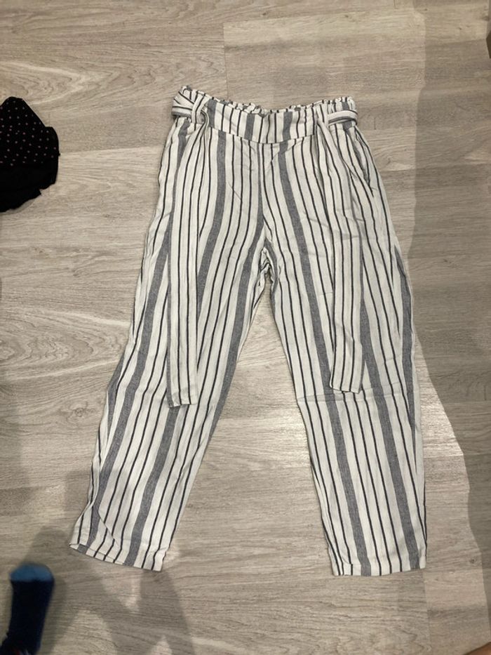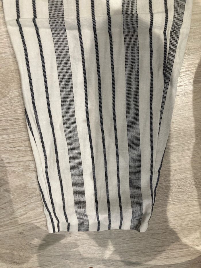 Pantalon à rayures. 55% l’un + 45% viscose. Taille haute + ceinture. Taille 40 #taillelamelie08000cm
