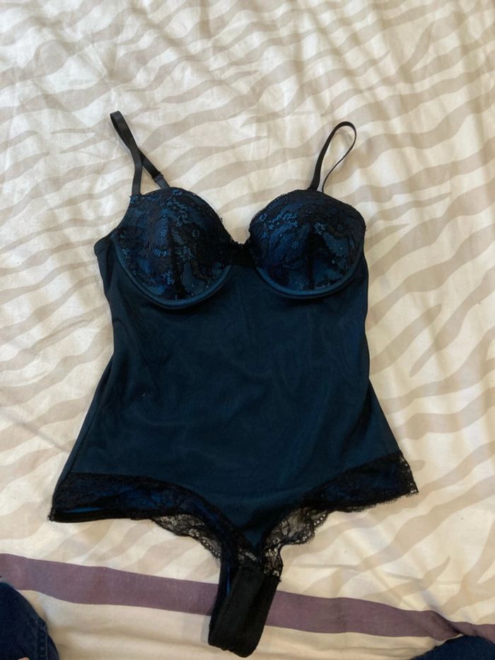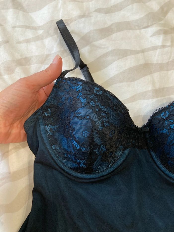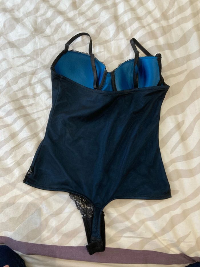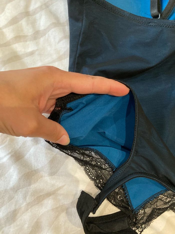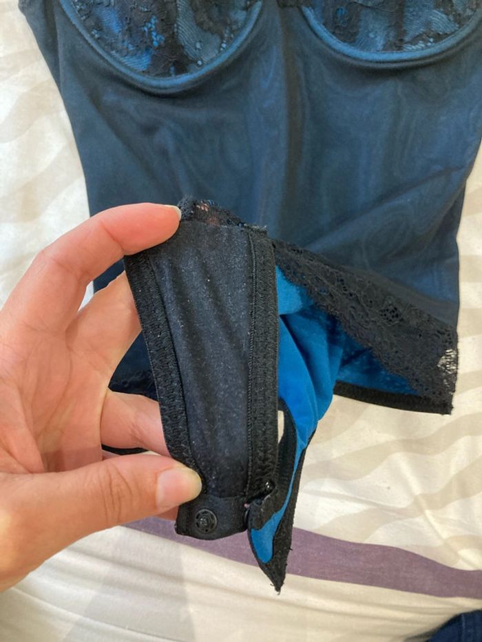 Bodie intérieur bleu, fermeture par pressions, toujours porté avec un bas de sous-vêtements. Taille s (85B). #sousvetementsamelie08000cm