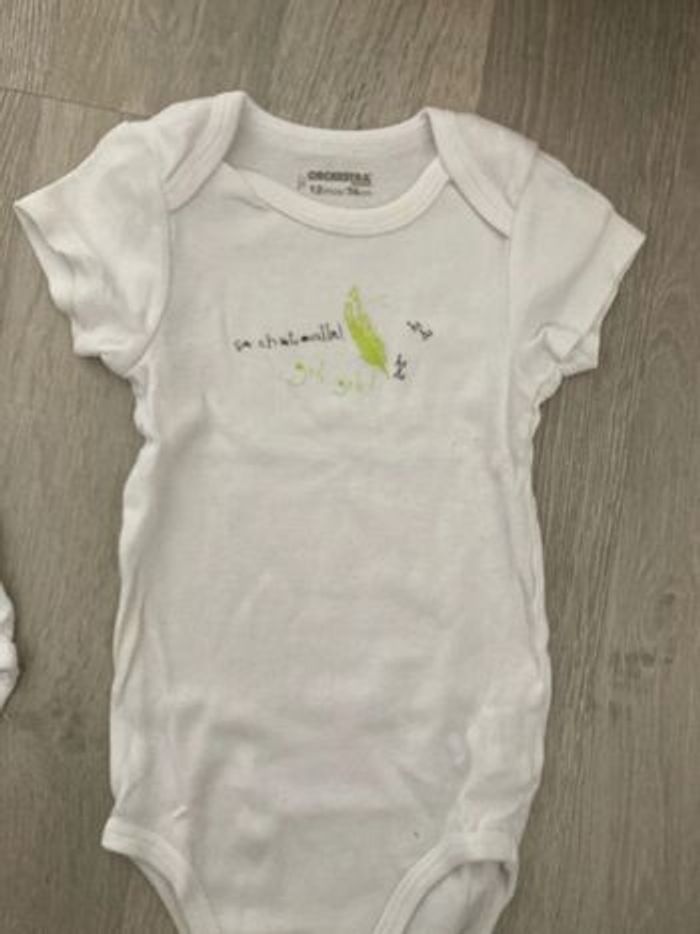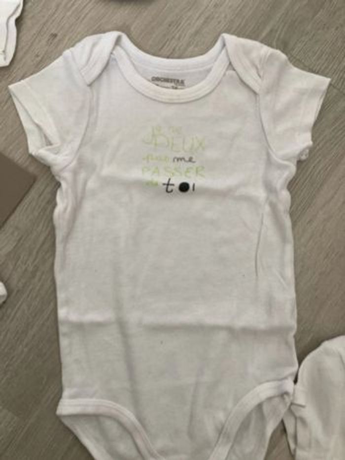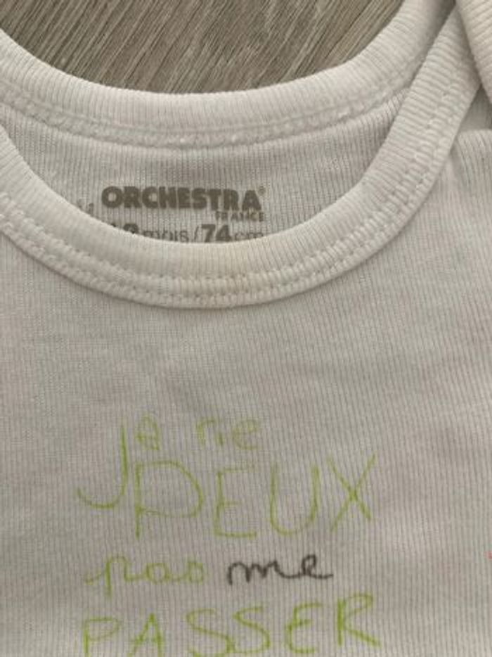 Lot 4 bodies : 3 orchestra + 1 tex. 2 blancs un peu jaune au col. Taille 12 mois #12moisgarçonamelie08000cm