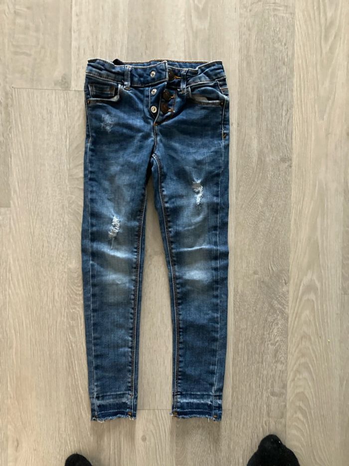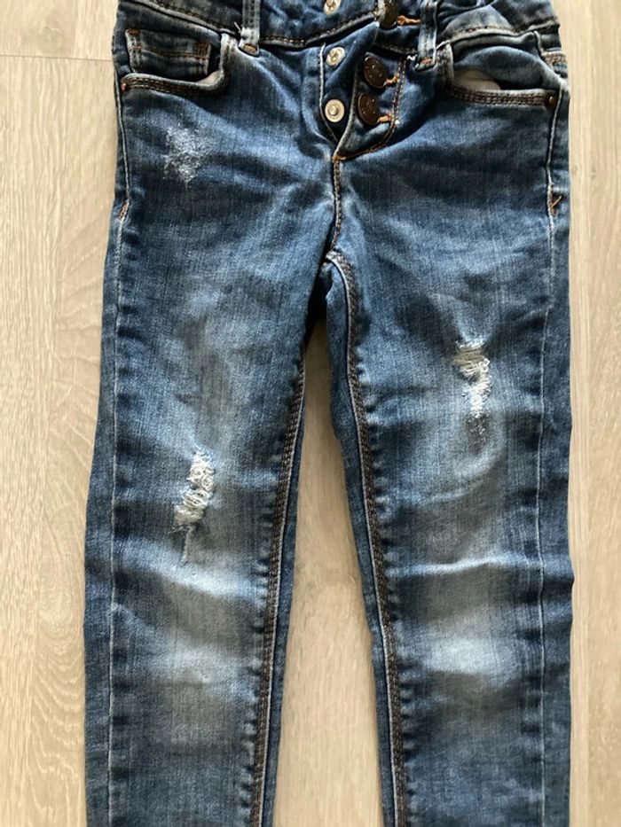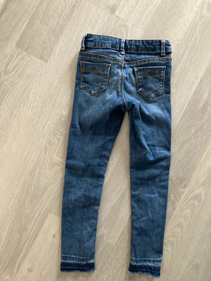 Jean coupe skinny, taille réglable, 3 pressions. Effet usé/arraché/coupé aux pattes. Taille 5 ans #5ansfilleamelie08000cm