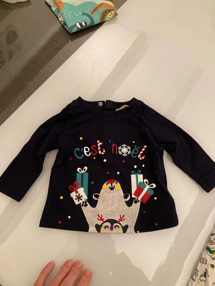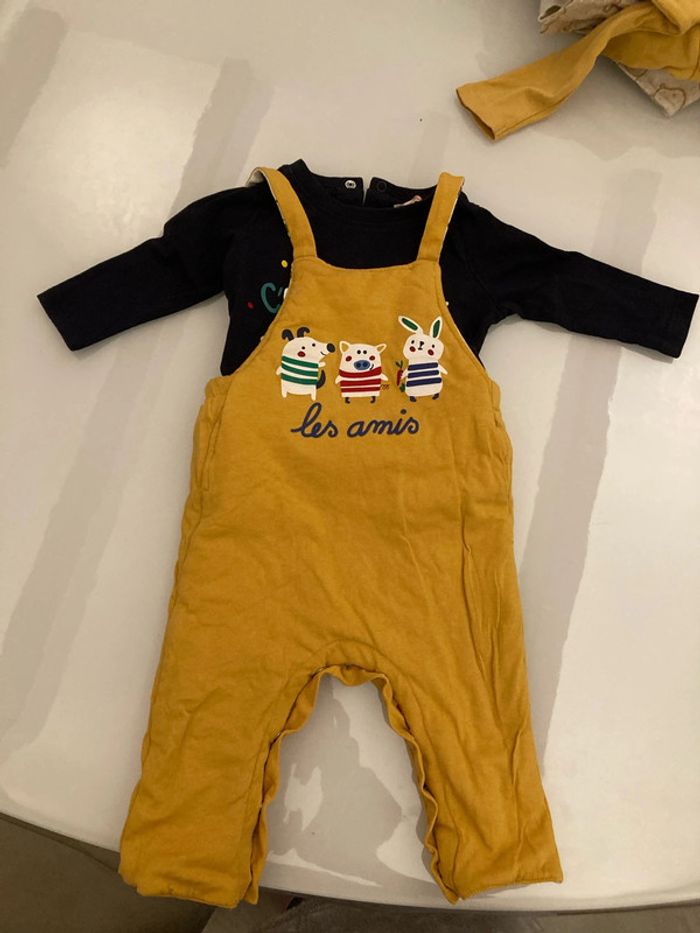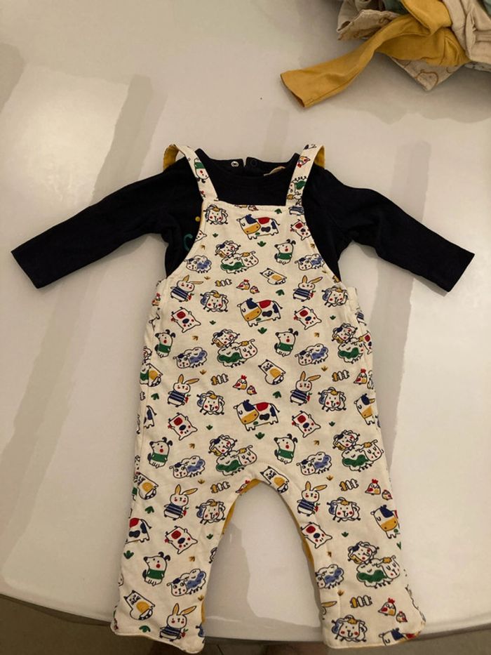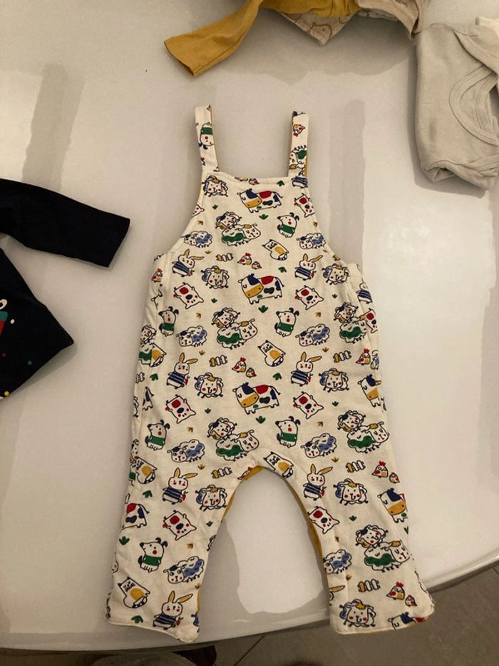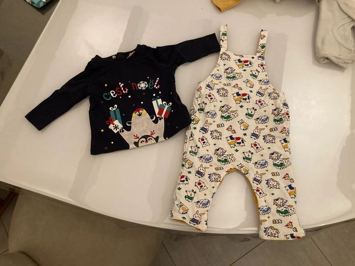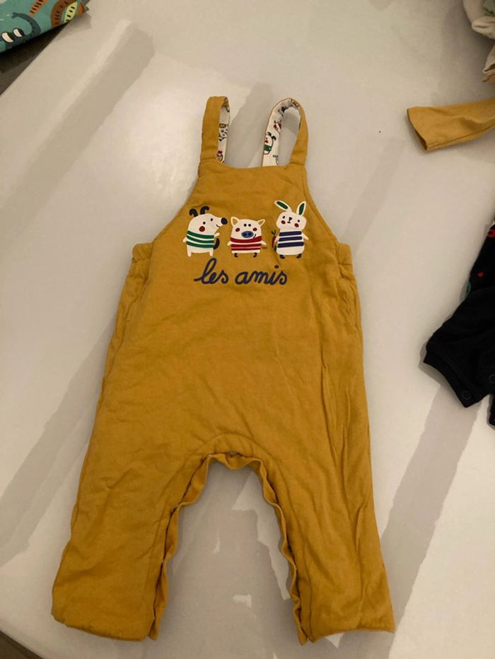 Salopette réversible épaisse, ouverture entrejambes par pressions. T shirt manches longues, 3 pressions en haut du dos. Taille 9 mois #9moisgarçonamelie08000cm
