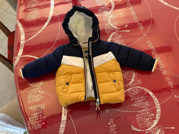 Doudoune bien chaude doublée polaire. Fermeture ok, deux poches avec pression. Taille 6-9 mois. Peut aussi convenir pour un petit 12 mois. Très peu porté, achat tardif. #6moisgarçonamelie08000cm #9moisgarçonamelie08000cm
