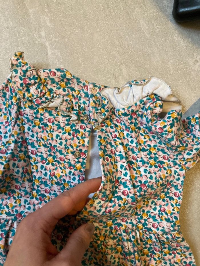 Robe motif pommes, petit col Claudine, pressions en haut du dos pour enfilage facile. Taille 12 mois #12moisfilleamelie08000cm