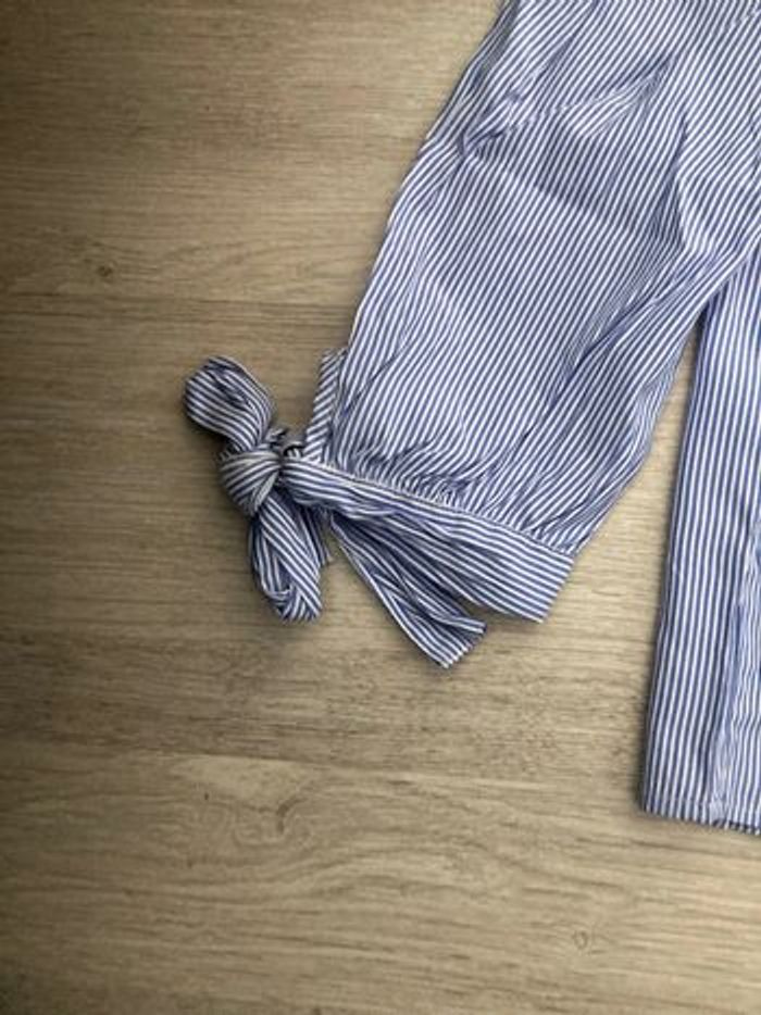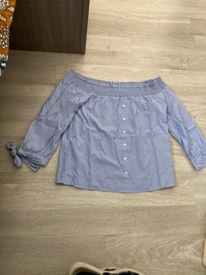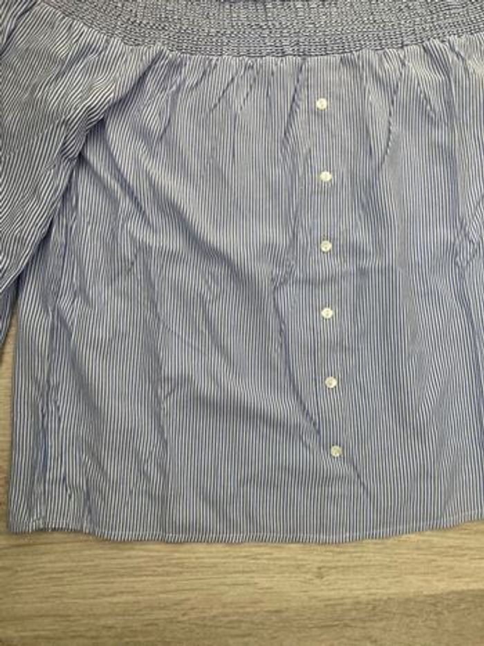 Blouse épaules dénudées, manches 3/4 avec noeuds au bout, faux boutons. Taille 38 #taillemamelie08000cm