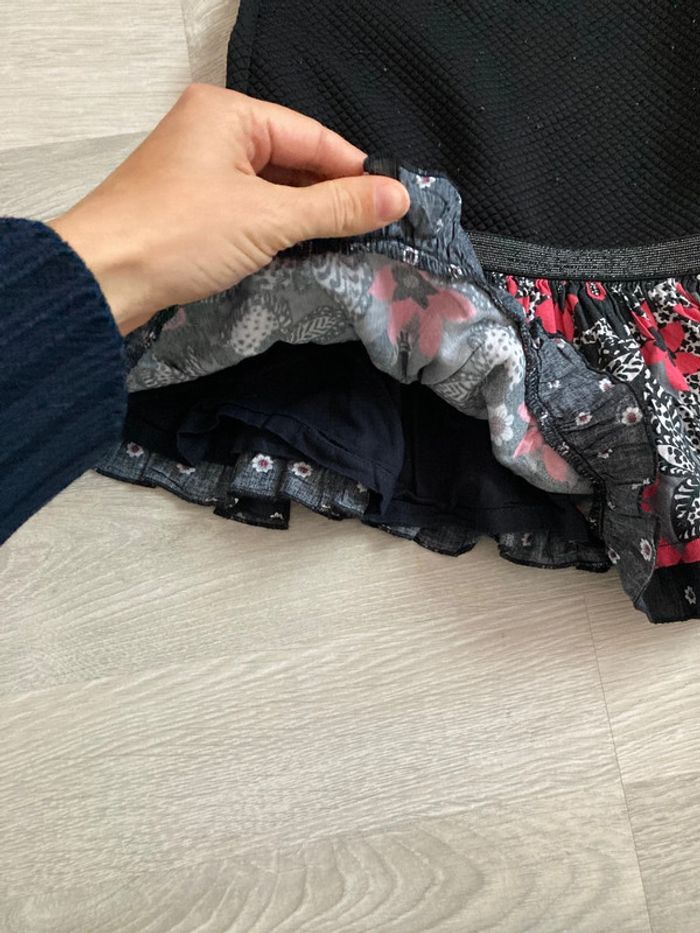 Robe bi matière idéale pour l’automne et le printemps car la partie jupe est fine doublée. Petit bouton dans le dos. Bouloche légèrement sur la partie haute. Taille 4 ans. #4ansfilleamelie08000cm