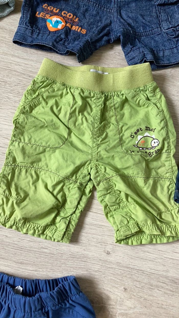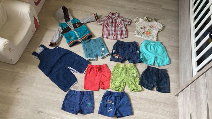 Lot 6 mois comprenant: - 1 salopette fine (jacadi) - 1 chemisette (creeks) - 1 veste avec partie imperméable devant (orchestra) - 1 t shirt manches courtes - 6 shorts (orchestra, sucre d’orge, kimbaloo, creeks) - 2 bermudas Certains vêtements ont été pas mal portes mais peuvent encore bien servir. #6moisgarçonamelie08000cm