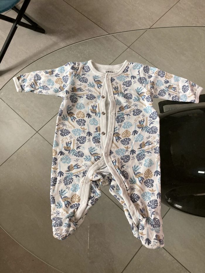 Pyjama motifs singe et feuilles. Ouverture devant. Taille 3 mois #3moisgarçonamelie08000cm