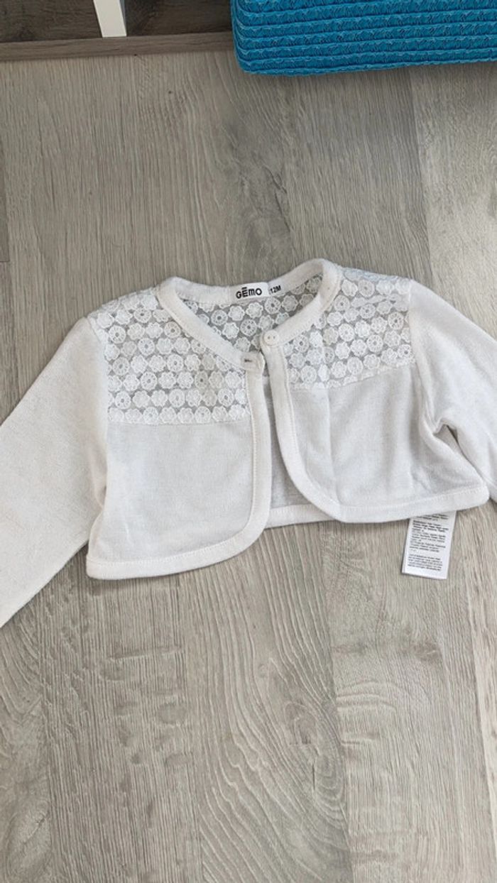 Boléro fin, détails dentelle sur le haut. Taille 12 mois #12moisfilleamelie08000cm