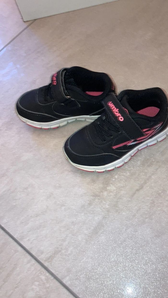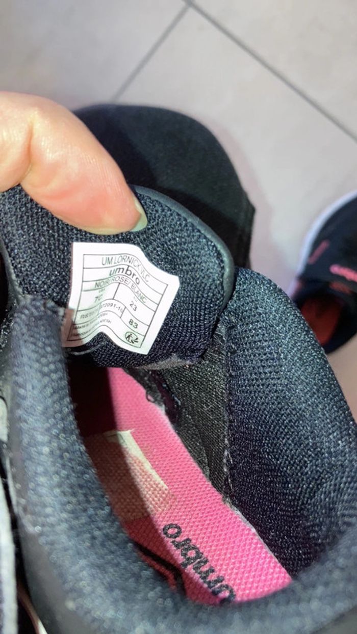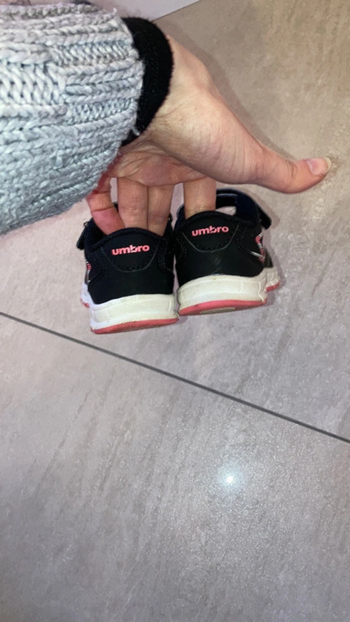 Baskets roses et noires légères à scratch. Les semelles ne sont pas usées car peu portées. Pointure 23 #chaussuresfilleamelie08000cm